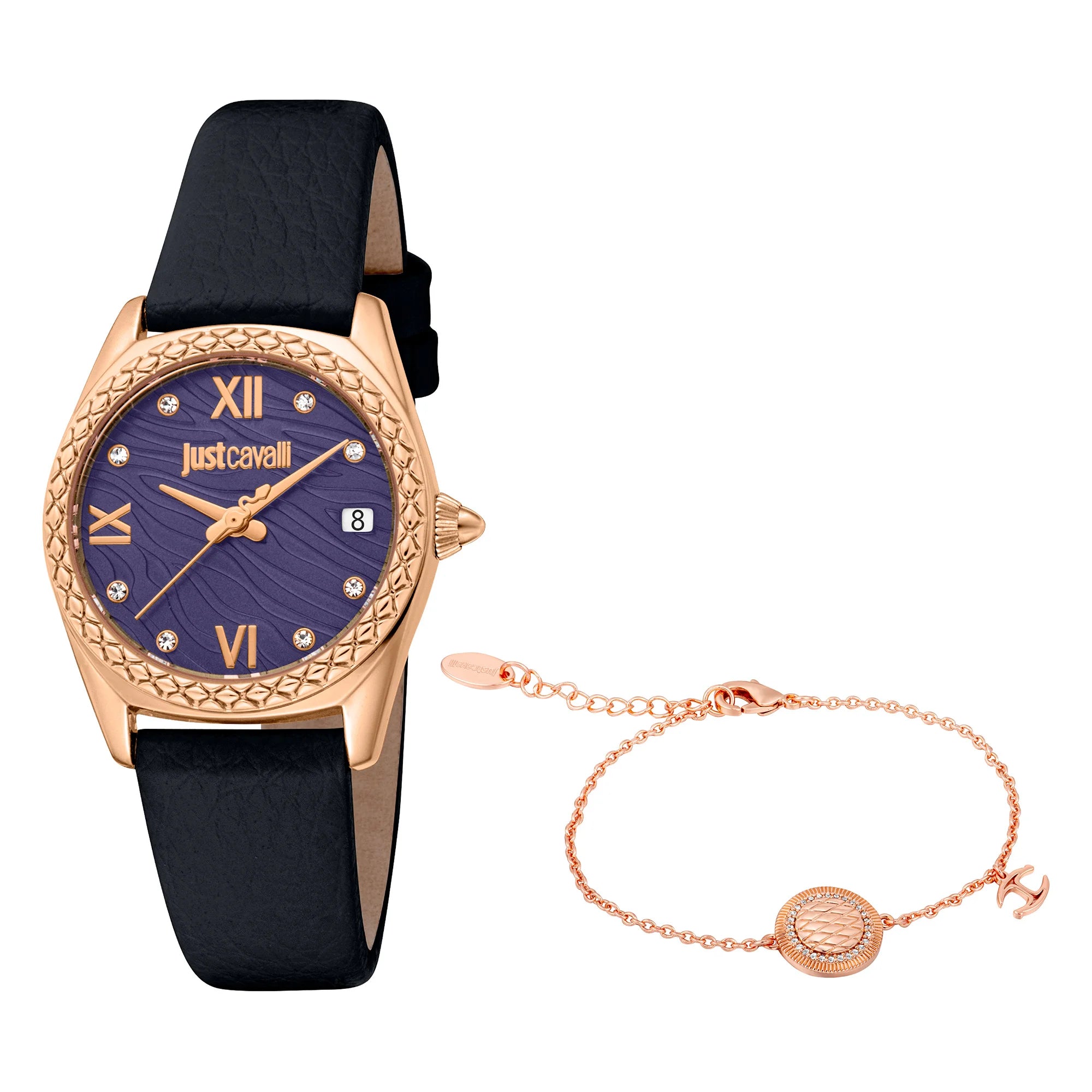 Just Cavalli SET Indomabile Animalier Pelle Nero Viola