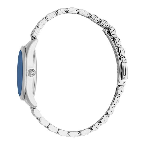 Nel regno dell'eleganza e della raffinatezza, l'orologio Just Cavalli Luna emerge come un faro di stile e grazia. Realizzato nel cuore della moda, questo squisito orologio della collezione Just Cavalli Glam Chic è una testimonianza dell'impegno del marchio verso il lusso e l'innovazione. Progettato per la donna moderna che emana fiducia e fascino, l'orologio Luna cattura l'attenzione con la sua cassa rotonda color argento-grigio che si abbina perfettamente al suo elegante cinturino in acciaio inossidabile. La fibbia déployante pieghevole con pulsante assicura una vestibilità sicura e confortevole, rendendolo un compagno ideale per ogni occasione. Il quadrante blu notte, che ricorda un cielo stellato, aggiunge un tocco di mistero e fascino, mentre il movimento al quarzo e la visualizzazione a tre lancette promettono precisione e affidabilità. Resistente all'acqua e adornato con un cristallo minerale, questo orologio è tanto pratico quanto bello. Il design raffinato e l'attenzione ai dettagli lo rendono un accessorio indispensabile per chi apprezza le cose più raffinate della vita. Con la sua armoniosa combinazione di moda e funzionalità, l'orologio Just Cavalli Luna non è solo un orologio, è una dichiarazione di stile e sofisticatezza che trascende le tendenze e il tempo.