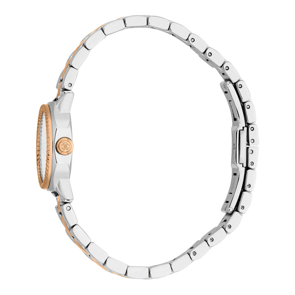 Nel mondo della moda, dove l'eleganza incontra l'innovazione, emerge un orologio che incarna l'essenza della sofisticazione e dello stile. Realizzato nel cuore dell'orologeria svizzera, questo orologio Roberto Cavalli Lady è una testimonianza di design raffinato e artigianato squisito. La sua cassa ottagonale, immersa in un lucente grigio argento, cattura la luce ad ogni movimento, creando una danza di riflessi che è al contempo affascinante e senza tempo. Il diametro della cassa di 24 mm è perfettamente proporzionato per la donna moderna che apprezza la sobrietà e la grazia. Resistente all'acqua fino a 50 metri, questo orologio è tanto versatile quanto bello, pronto ad accompagnarti dalla sala riunioni al salone da ballo. Il vetro minerale protegge un quadrante che riflette la tonalità grigio argento della cassa, offrendo una fusione armoniosa di forma e funzione. Il cinturino in acciaio inossidabile, anch'esso grigio argento, avvolge elegantemente il polso, fissato da una chiusura deployante a farfalla con pulsante per facilità e comfort. All'interno, la precisione di un movimento al quarzo, alimentato dal calibro GL32, garantisce che il tempo sia sempre dalla tua parte. Con il suo display a tre lancette, questo orologio è una celebrazione della semplicità e dell'eleganza, un accessorio perfetto per la donna attenta alla moda che valorizza sia lo stile che la sostanza.
