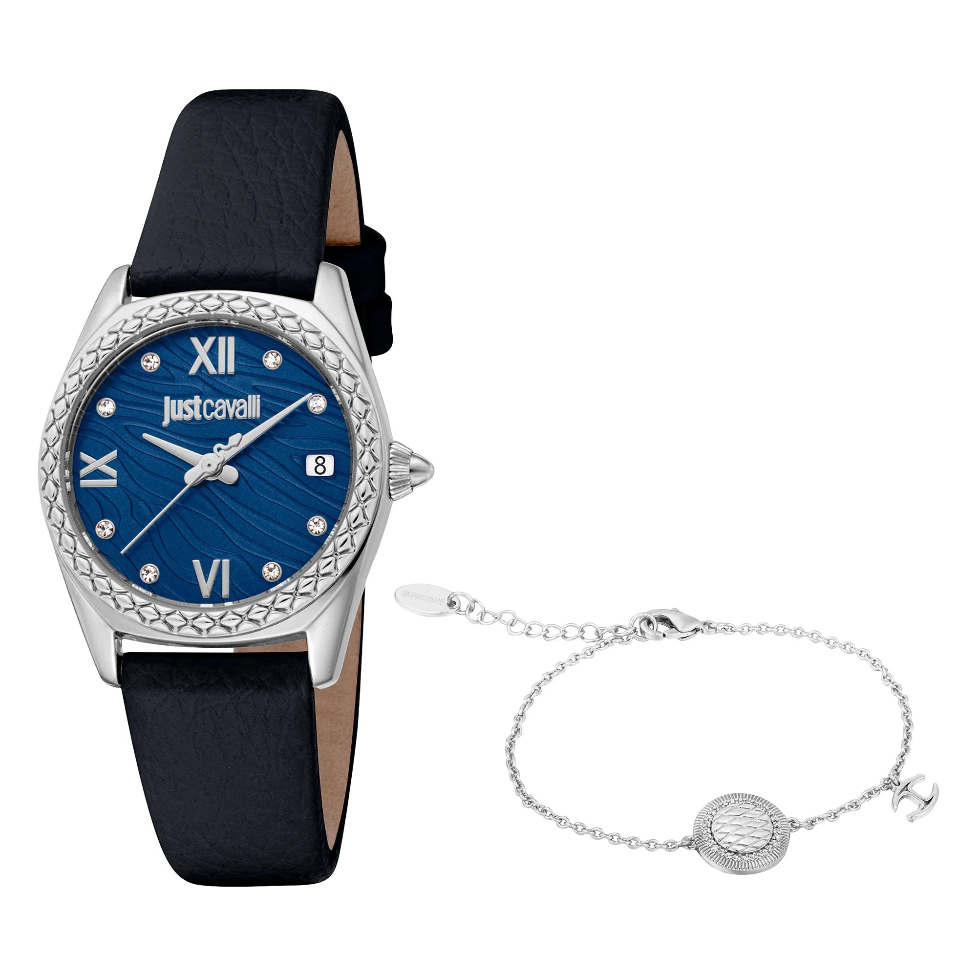 Just Cavalli SET Indomitable Animalier Pelle Nera Blu