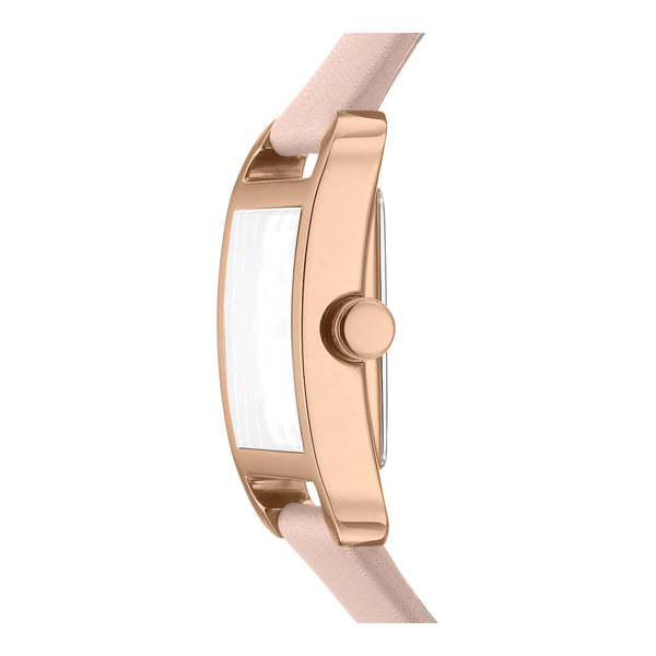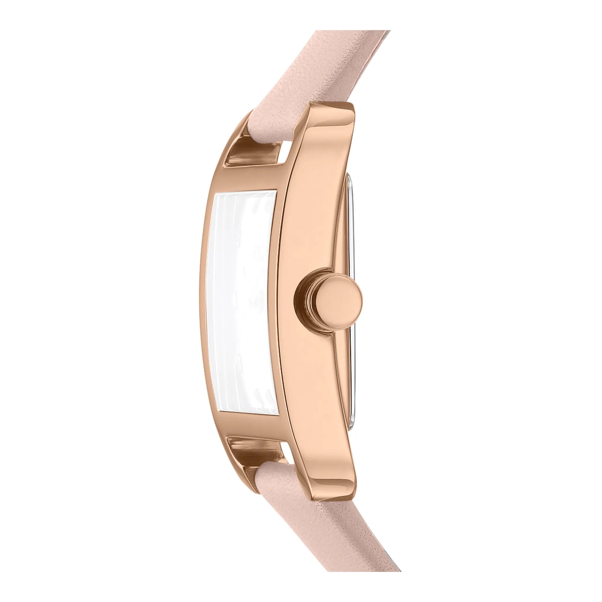 Nel cuore pulsante della città, dove la moda incontra la funzionalità, l'orologio DKNY DK1L004 City Midi emerge come simbolo di eleganza urbana. Realizzato in una raffinata forma rettangolare, la sua cassa in oro rosa emana un caldo bagliore, completando perfettamente l'energia vibrante della metropoli. Il diametro di 27 mm dell'orologio è una testimonianza della sua presenza delicata ma d'impatto al polso, rendendolo un accessorio ideale per la donna moderna che apprezza sia lo stile che la sostanza. Il quadrante grigio-argento, con il suo sottile scintillio, cattura l'essenza dello skyline cittadino al crepuscolo, mentre il movimento al quarzo a tre lancette garantisce precisione in ogni momento. Incassato in cristallo minerale, questo orologio è progettato per resistere alle difficoltà della vita quotidiana, offrendo resistenza all'acqua per quelle piogge improvvise in città. La corona a estrazione e spinta aggiunge un tocco di praticità, fondendosi perfettamente con il design sofisticato dell'orologio. Un cinturino in pelle rosa avvolge il polso con una chiusura a fibbia ad ardiglione, fornendo un morbido contrasto con le tonalità metalliche dell'orologio e aggiungendo un tocco di colore a qualsiasi ensemble. Questo orologio DKNY non è solo un accessorio, è una dichiarazione di pensiero all'avanguardia nella moda, incarnando lo spirito di una città che non dorme mai.