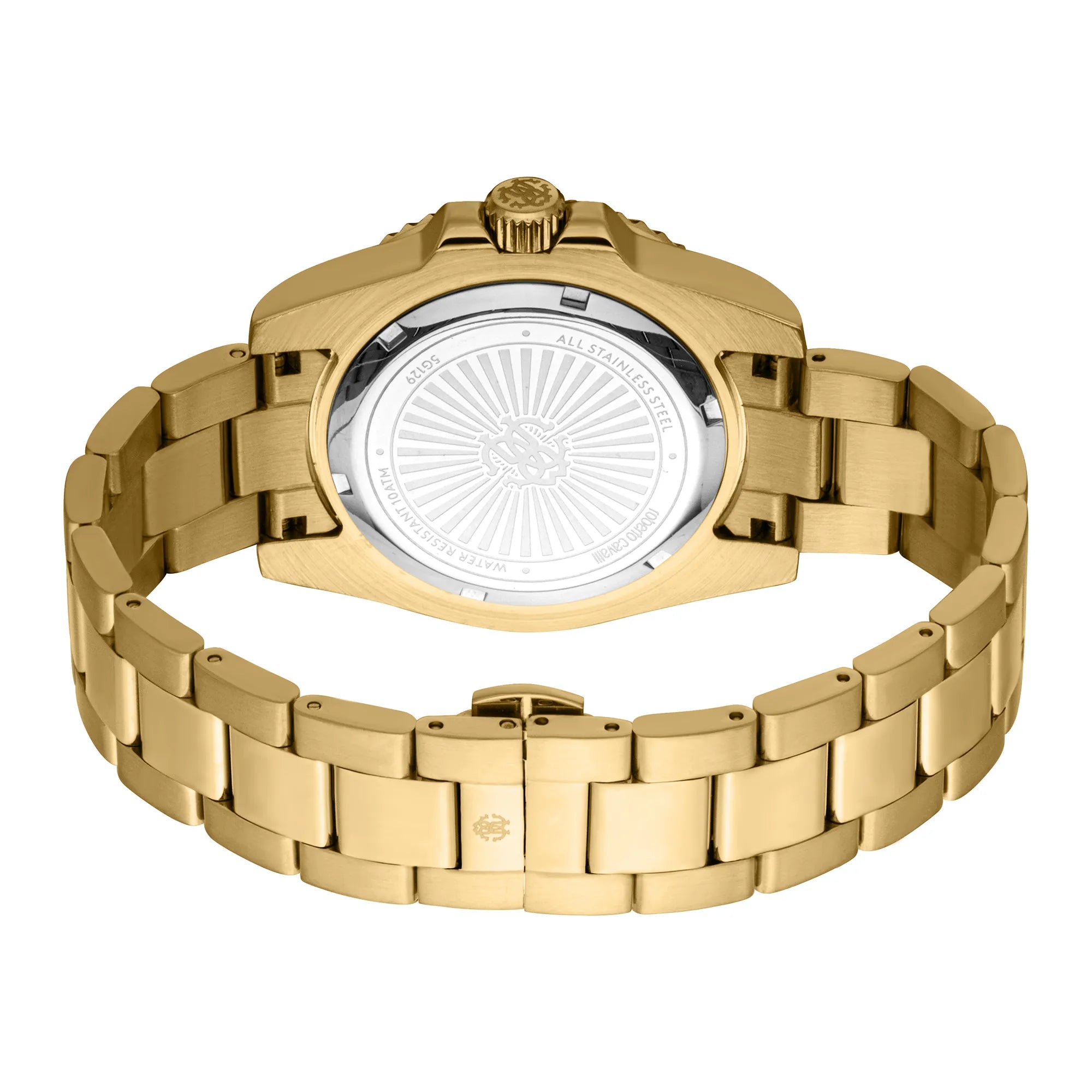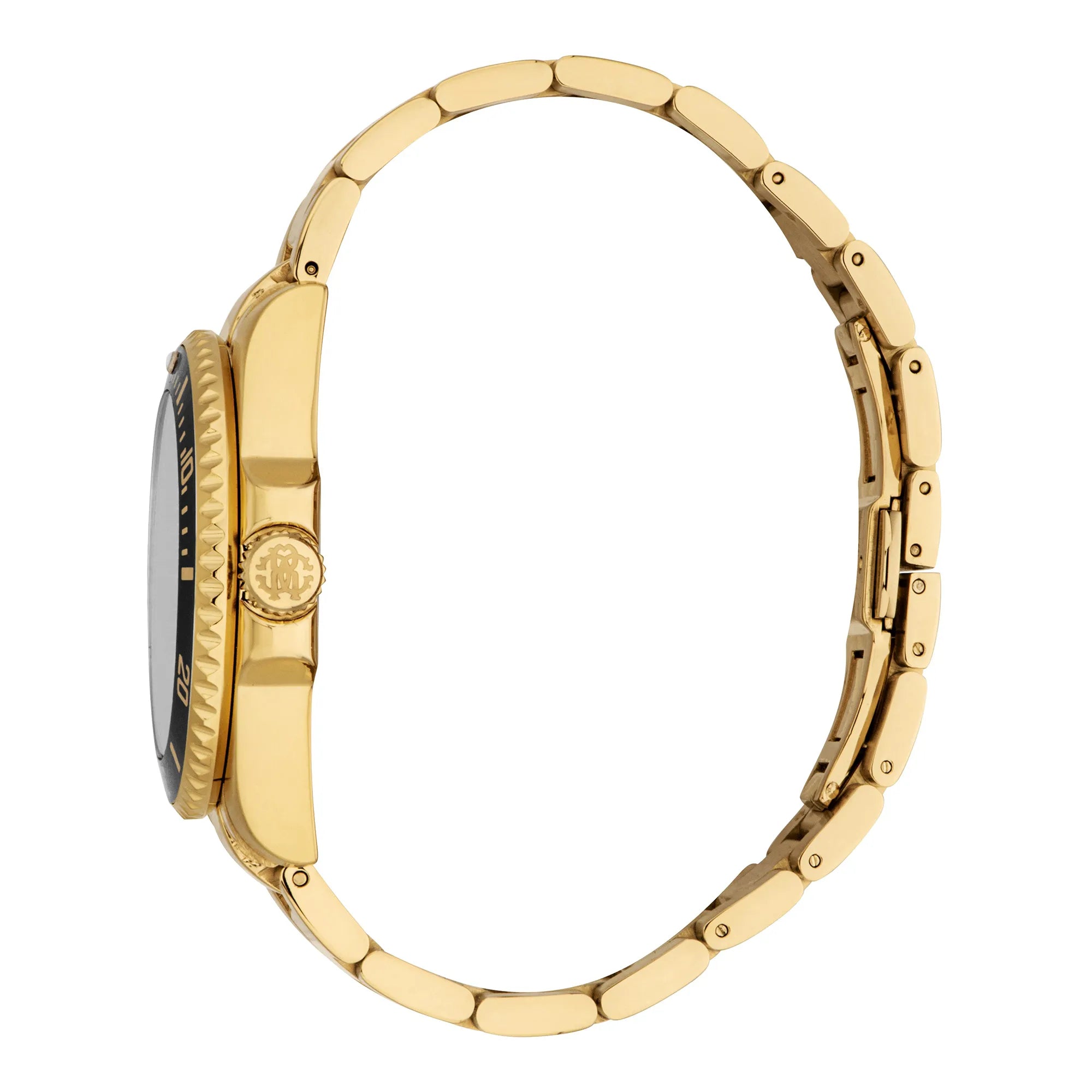 Nel mondo dell'orologeria, dove l'eleganza incontra la precisione, emerge un orologio che incarna l'essenza della sofisticazione e dello stile. Realizzato nel cuore dell'orologeria svizzera, questo orologio Roberto Cavalli Gent è una testimonianza dell'impegno del marchio per il lusso e la moda. La cassa rotonda, immersa in una splendida tonalità di oro giallo, cattura l'occhio con il suo diametro di 41 mm, offrendo un perfetto equilibrio tra audacia e sobrietà. Il suo vetro minerale protegge un quadrante nero sorprendente, dove il tempo è segnato con precisione da un movimento al quarzo, garantendo che ogni secondo sia catturato con grazia. La funzione calendario della data aggiunge un tocco di praticità a questo pezzo all'avanguardia nella moda. Il cinturino in acciaio inossidabile, anch'esso in oro giallo, avvolge il polso con un senso di eleganza raffinata, assicurato da una fibbia deployante a farfalla con pulsante per facilità e comfort. Resistente all'acqua fino a 50 metri, questo orologio non è solo una dichiarazione di stile ma anche un compagno per le avventure della vita. La corona a tirare e spingere aggiunge un tocco classico, permettendo regolazioni facili. Questo orologio Just Cavalli è più di un accessorio, è una dichiarazione di gusto e un simbolo del viaggio del gentiluomo moderno attraverso il tempo.