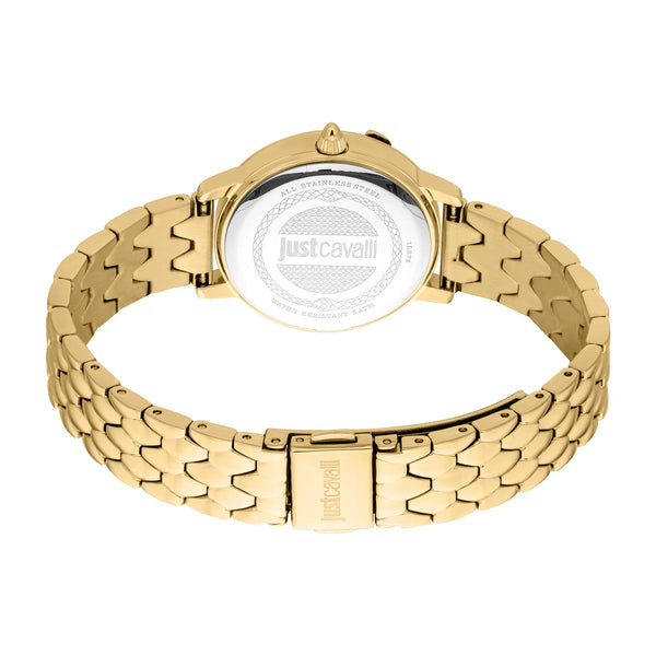 Immergiti nel lusso con l'orologio Just Cavalli Viperized, una visione dorata della moda. Il quadrante turchese, incorniciato da una cassa in oro giallo da 30 mm, cattura l'essenza dell'eleganza. Un cinturino in acciaio inossidabile e una chiusura a farfalla assicurano questo gioiello resistente all'acqua con grazia.