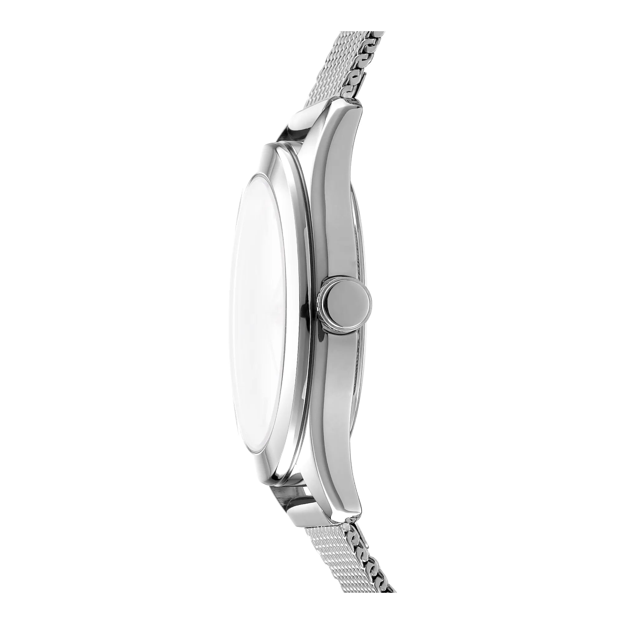 L'orologio DKNY Astoria Logo cattura l'essenza dell'eleganza moderna. Con una cassa rotonda argento-grigia e un quadrante abbinato, emana un fascino sobrio. La chiusura scorrevole regolabile sul cinturino in acciaio inossidabile garantisce una vestibilità perfetta, mentre la resistenza all'acqua WR 50mt aggiunge un tocco di praticità.