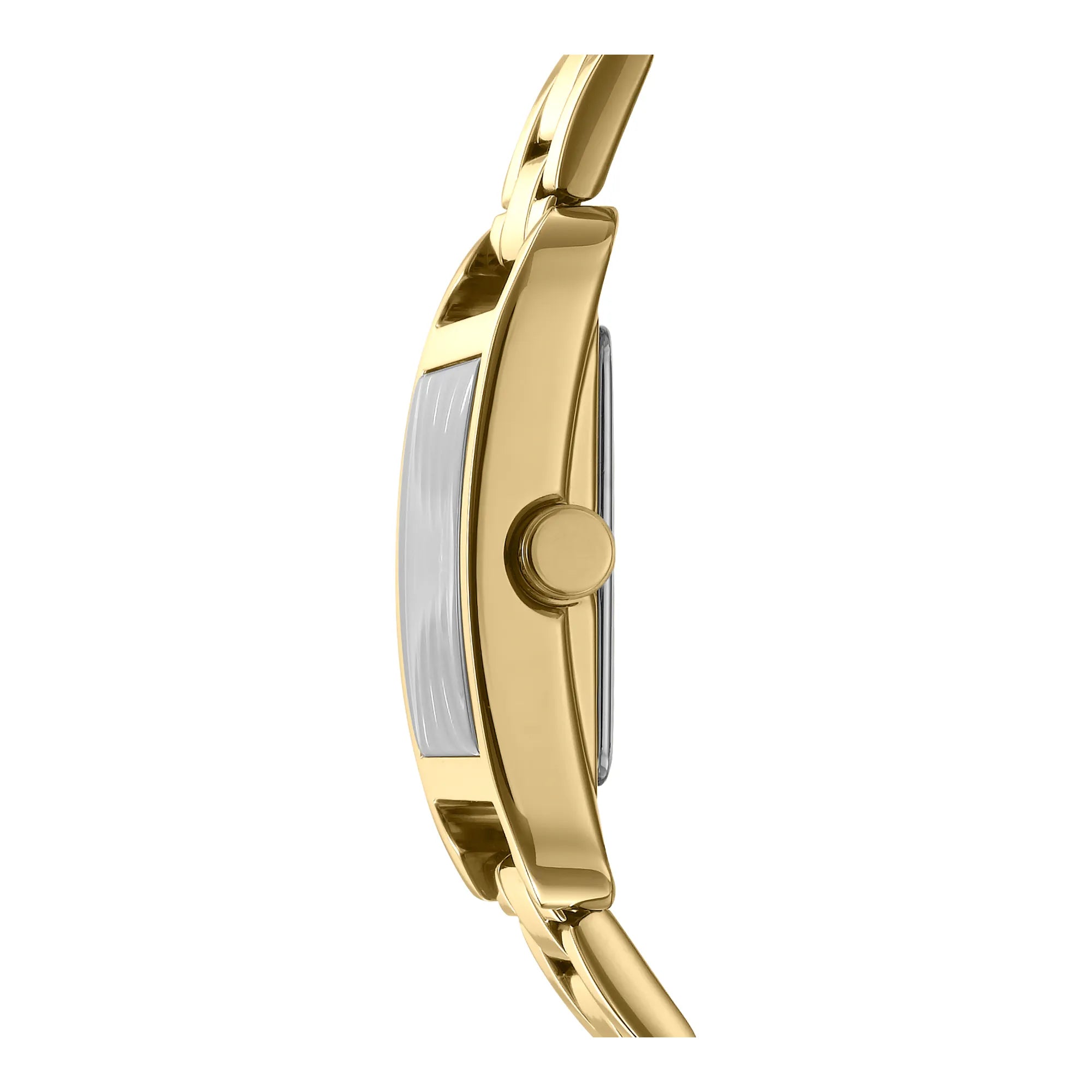 Nel cuore pulsante della città, dove la moda incontra la funzionalità, emerge un orologio che incarna l'essenza dell'eleganza urbana. L'orologio DKNY City Maxi è una testimonianza dello stile di vita dinamico della donna moderna, fondendo senza sforzo sofisticatezza e praticità. La sua cassa rettangolare, immersa in una lussuosa tonalità di oro giallo, cattura la luce ad ogni movimento, rendendolo un accessorio sorprendente per ogni occasione. Il diametro della cassa di 29 mm offre un perfetto equilibrio tra audacia e sobrietà, assicurando che si distingua senza essere eccessivo. Realizzato con precisione, questo orologio è resistente all'acqua, offrendo tranquillità per quegli schizzi imprevisti della vita cittadina. Il cristallo minerale protegge il quadrante grigio-argento, dove tre lancette danzano con grazia, alimentate da un affidabile movimento al quarzo. La corona a tirare e spingere aggiunge un tocco di fascino classico, mentre il cinturino in acciaio inossidabile, anch'esso in oro giallo, avvolge il polso con un design raffinato. La chiusura deployante a farfalla con pulsante garantisce una vestibilità sicura, permettendo a chi lo indossa di affrontare la giornata con fiducia e facilità. Questo orologio DKNY non è solo un misuratore del tempo, è una dichiarazione di stile, un riflesso del vibrante paesaggio urbano e una celebrazione del viaggio della donna moderna attraverso la vita.