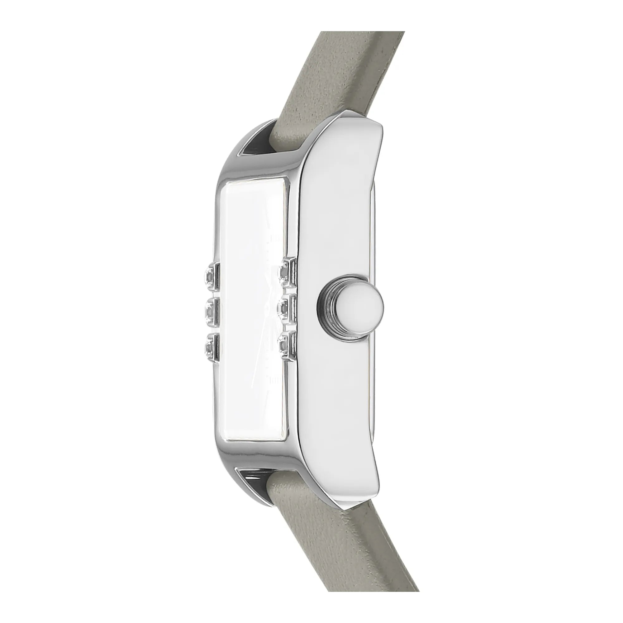 Il DKNY Westside Glitz è un testimone del glamour sobrio. La sua cassa rettangolare e il quadrante grigio-argento sono completati da un cinturino in pelle morbida, creando un insieme chic. La chiusura con fibbia ad ardiglione garantisce una vestibilità sicura, rendendolo un compagno perfetto per ogni occasione.