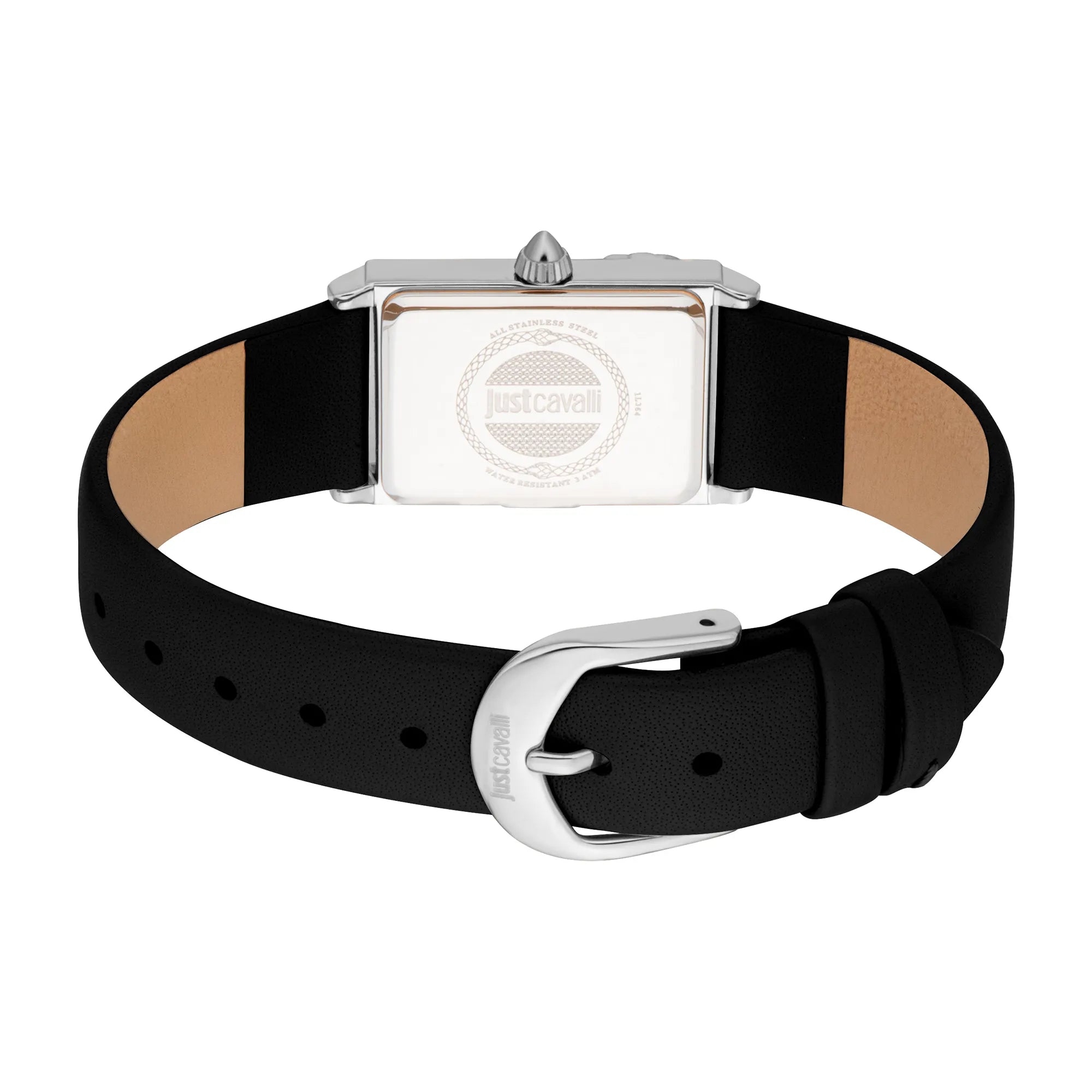 Il Just Cavalli Dolcezza Snake in grigio argento è un'elegante incarnazione dell'eleganza moderna. La sua cassa rettangolare da 20mm e il quadrante grigio argento sono abbinati a un cinturino in pelle nera, offrendo un aspetto sofisticato, resistente all'acqua e senza sforzo chic.
