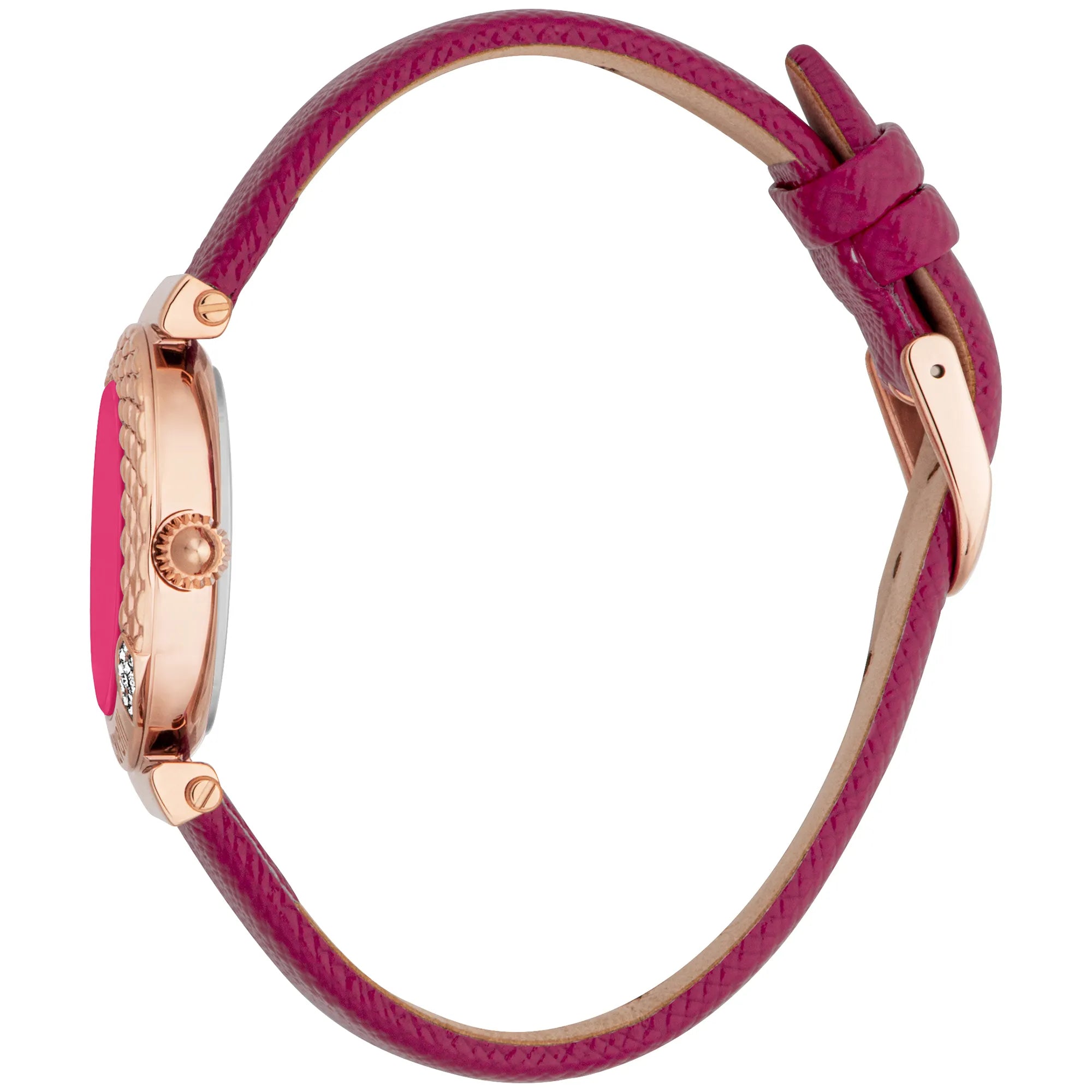 Nel regno della moda, dove l'eleganza incontra l'audacia, emerge un orologio che cattura l'essenza della femminilità moderna con un tocco di stile audace. Realizzato nel cuore dell'innovazione stilistica, questo Just Cavalli Watch della collezione JC1L332 Curiosa è una testimonianza dell'impegno del marchio per un design audace e una lavorazione squisita. La cassa rotonda, immersa in una lussuosa tonalità oro rosa, emana un senso di sofisticazione senza tempo, mentre il suo diametro di 30 mm garantisce una presenza delicata ma d'impatto al polso. Il cinturino in pelle viola brughiera, abbinato a un quadrante coordinato, introduce una nota di colore che parla allo spirito vibrante delle fashioniste contemporanee. Questa armoniosa combinazione di tonalità non è solo una delizia visiva, ma una dichiarazione di individualità e fiducia. Il cristallo minerale protegge il quadrante, assicurando chiarezza e durata, mentre la corona a tirare e spingere offre facilità di regolazione. Con una resistenza all'acqua fino a 50 metri, questo orologio è tanto pratico quanto elegante, pronto ad accompagnarti nelle avventure della vita. Il movimento al quarzo garantisce precisione, e il display a tre lancette conferisce un tocco classico a questo capolavoro moderno. Chiuso con una fibbia ad ardiglione, questo orologio non è solo un accessorio ma un compagno che celebra lo spirito audace di chi osa distinguersi.