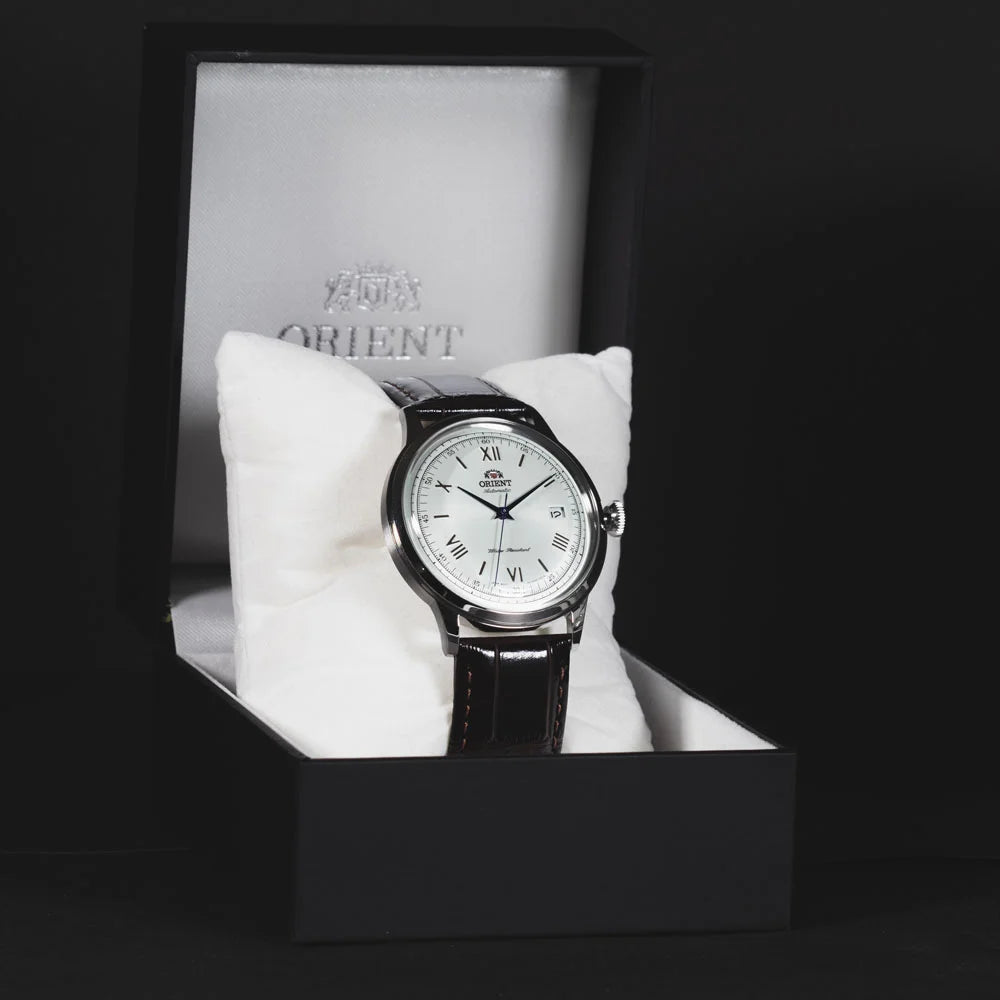 Nel regno dell'eleganza senza tempo, l'ORIENT AC00 Bambino V2 emerge come un faro di sofisticazione classica. Realizzato con meticolosa attenzione ai dettagli, questo orologio ORIENT Classic è una testimonianza dell'arte dell'orologeria. La sua cassa rotonda, immersa in una raffinata tonalità grigio argento, racchiude un quadrante grigio chiaro che emana un fascino discreto. L'armoniosa combinazione di colori è completata da un cinturino in pelle marrone, fissato con una tradizionale fibbia ad ardiglione, che offre sia comfort che stile. Al cuore di questo capolavoro si trova il movimento meccanico, alimentato dal calibro F6724 con 22 rubini, che garantisce precisione con una accuratezza giornaliera di +25/-15. La capacità dell'orologio di essere sia a carica manuale che automatica testimonia la sua versatilità, rispondendo alle esigenze del gentiluomo moderno. Resistente all'acqua e protetto da un cristallo minerale, promette durata senza compromettere l'eleganza. La corona a tirare e spingere e il calendario della data aggiungono un tocco funzionale al suo design classico. Questo orologio ORIENT non è solo un segnatempo, è una dichiarazione di gusto raffinato, perfetto per chi apprezza le sottili sfumature dello stile classico.
