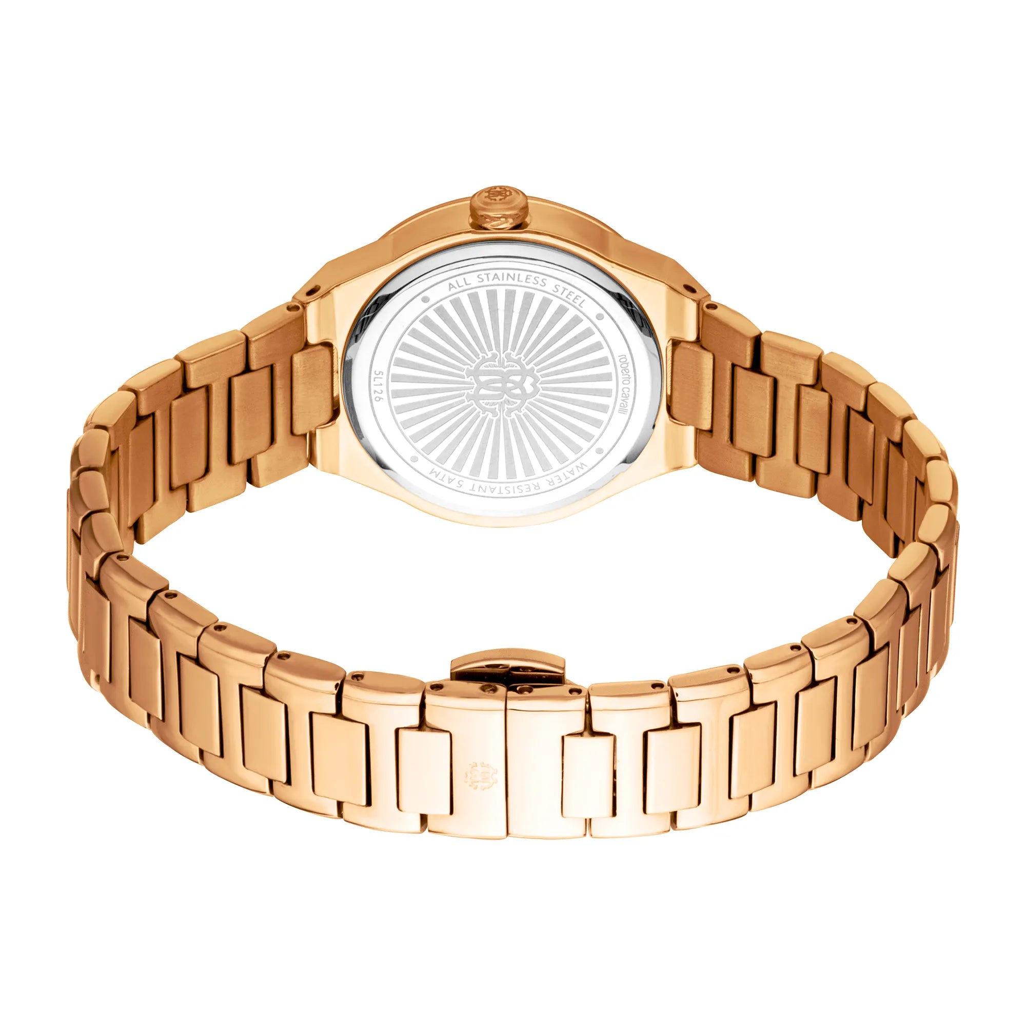 Concediti il fascino romantico dell'orologio Roberto Cavalli Lady, impreziosito da una cassa rotonda in oro rosa e un quadrante grigio argento. Il cinturino in acciaio inossidabile in oro rosa aggiunge un tocco di calore. Resistente all'acqua fino a 50 metri, incarna un'eleganza senza tempo.