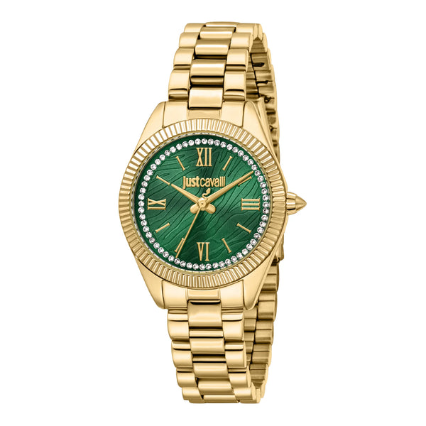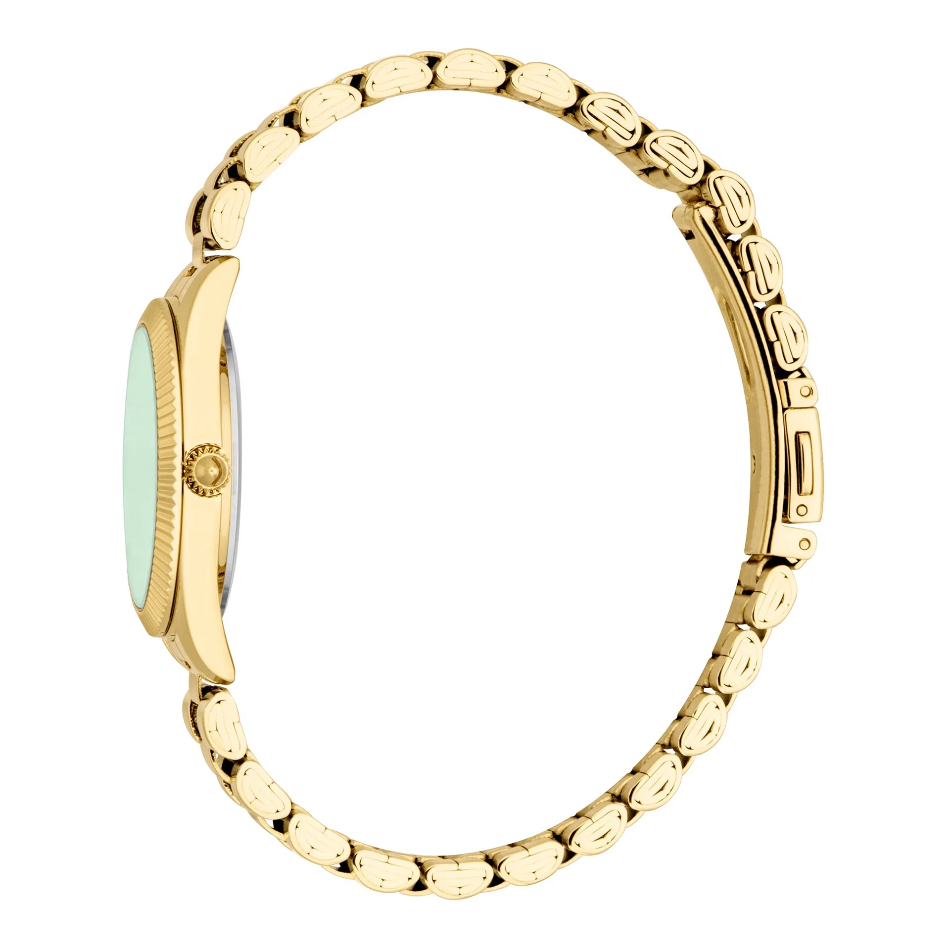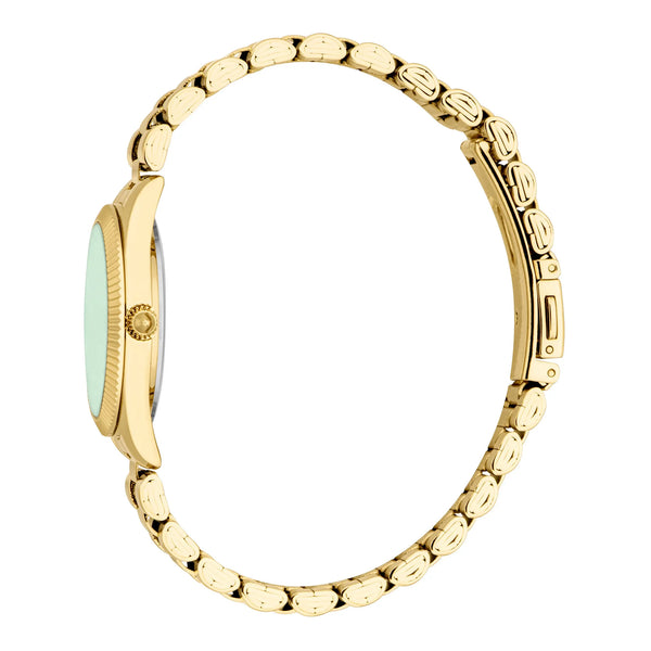 Orologio realizzato con un design raffinato per la donna moderna, questo elegante orologio pesa 54 g e abbina una cassa rotonda in acciaio oro giallo a un quadrante verde bottiglia che cattura la luce con una sottile profondità. Il cristallo minerale protegge il quadrante con una durabilità quotidiana mentre la corona a tirare e spingere garantisce una semplice regolazione dell'ora. La costruzione resistente all'acqua offre una protezione pratica per l'uso quotidiano. Un cinturino in acciaio inossidabile completa la cassa in tono e finitura, fissato da una fibbia déployante pieghevole con pulsante per una chiusura sicura. Progettato per uno stile femminile e una presenza raffinata, questo orologio bilancia un'estetica elegante con una funzionalità affidabile, rendendolo un accessorio versatile dal giorno alla sera.