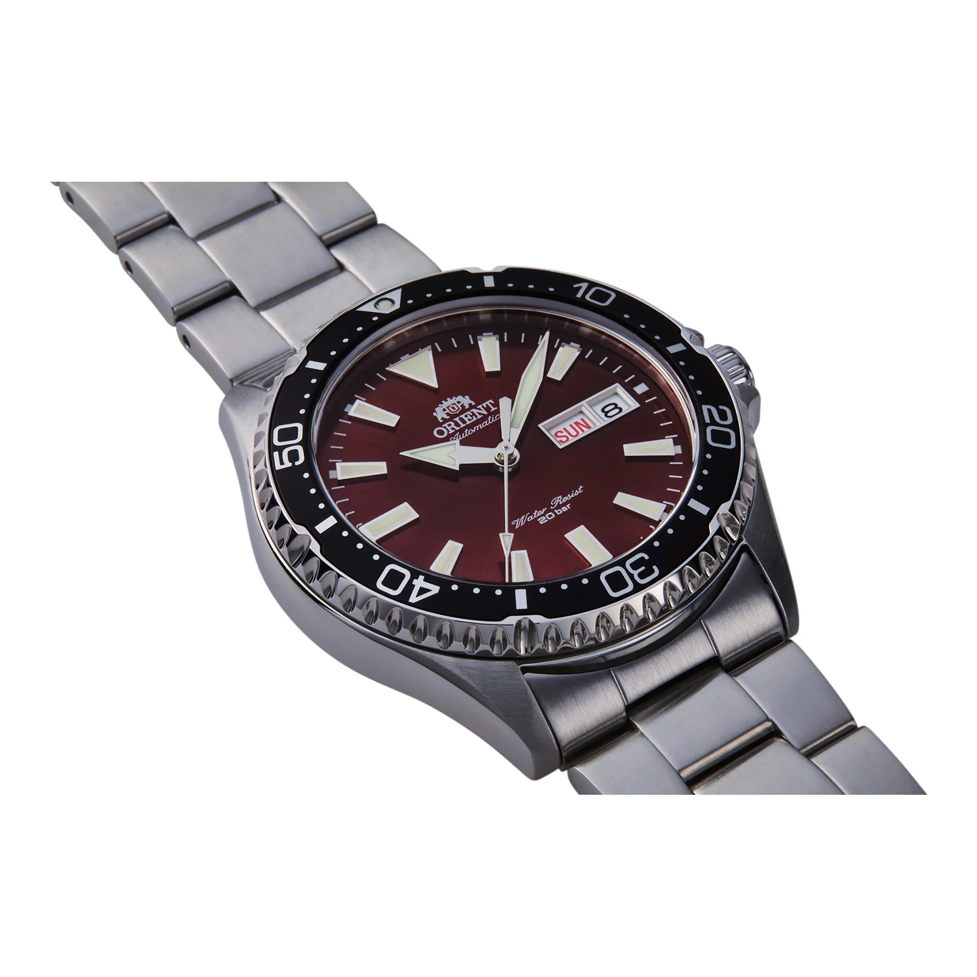Nel mondo degli orologi, dove la precisione incontra l'eleganza, emerge una creazione che cattura l'essenza dell'avventura e della sofisticazione. Realizzato nel cuore dell'eccellenza orologiera, l'ORIENT AA00 Kamasu, noto anche come Mako III, è una testimonianza della dedizione del marchio alla qualità e allo stile. Questo orologio ORIENT Sports, progettato per l'uomo moderno, vanta un design raffinato che fonde perfettamente funzionalità e appeal estetico. La sua cassa rotonda, immersa in una elegante tonalità argento-grigia, ospita un quadrante rosso vino accattivante che aggiunge un tocco di colore, rendendolo un pezzo distintivo per chi osa essere diverso. Il cinturino in acciaio inossidabile, abbinato alla cassa nella sua eleganza argento-grigia, avvolge il polso con una fibbia deployante pieghevole, garantendo sia sicurezza che comfort. Sotto il suo cristallo zaffiro si trova il cuore dell'orologio: un movimento meccanico alimentato dal calibro F6922, con 22 rubini e dotato di carica manuale e automatica. Con una precisione giornaliera di +25/-15, questo orologio promette affidabilità, mentre la sua resistenza all'acqua da 200 metri per subacquei e la corona a vite lo rendono un compagno fidato per le avventure acquatiche. Il calendario con giorno e data aggiunge praticità al suo carattere sportivo, rendendolo una scelta ideale per chi cerca sia stile che sostanza nella vita quotidiana.