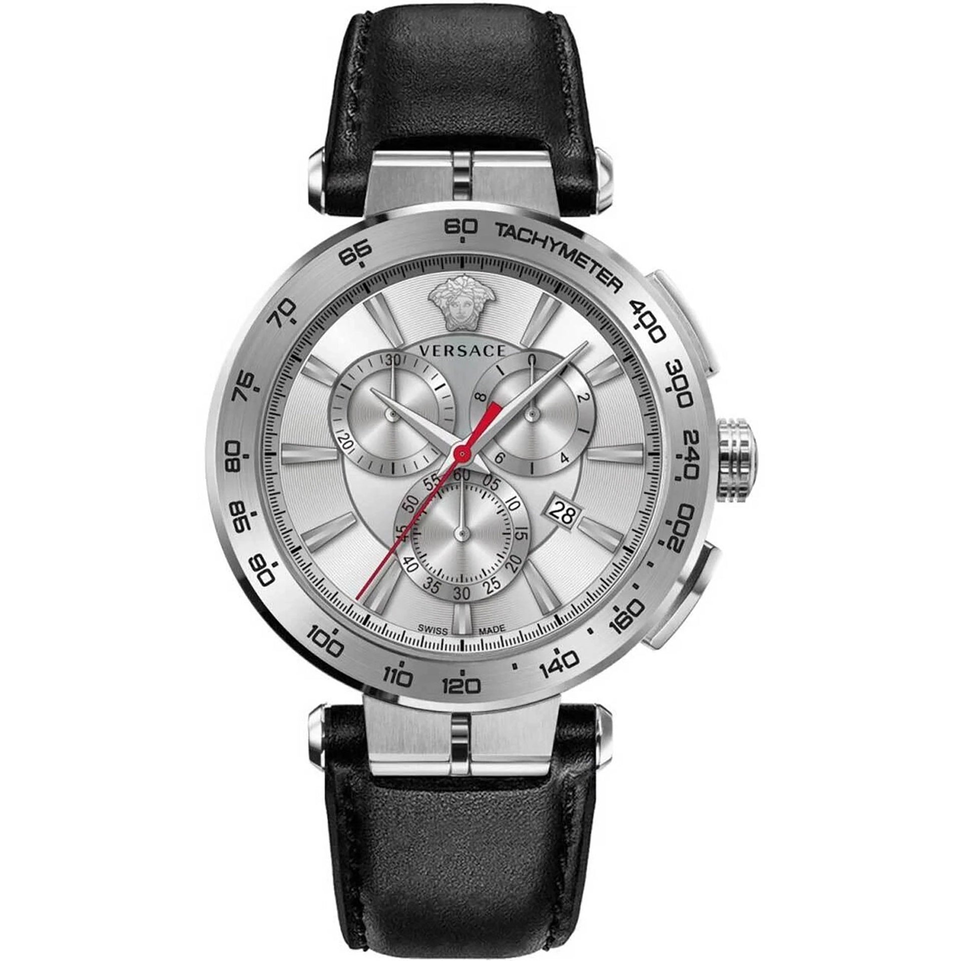 L'eleganza trova la sua forma in questo orologio grigio-argento, dove un quadrante metallico luminoso e un cristallo zaffiro si incontrano con un classico cinturino in pelle nera, creando un'armoniosa fusione di stile contemporaneo e sofisticatezza senza tempo.