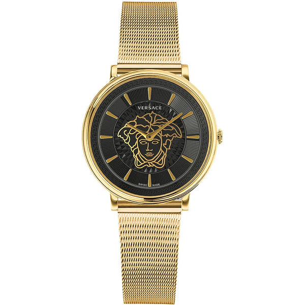 Nel mondo dell'orologeria, dove l'eleganza incontra l'innovazione, questo squisito orologio emerge come un faro di stile e sofisticatezza. Realizzato nel cuore del lusso, incarna l'essenza della femminilità moderna con il suo design all'avanguardia. La cassa rotonda, splendida in oro giallo, cattura la luce con un bagliore sottile, mentre il suo diametro di 38 mm offre un perfetto equilibrio tra presenza e grazia. Il quadrante nero, una tela di mistero e fascino, è protetto da un cristallo zaffiro, garantendo chiarezza e resistenza. Resistente all'acqua fino a 50 metri, questo orologio è versatile quanto è bello, pronto ad accompagnarti dalla sala riunioni alla sala da ballo. La corona a tirare e spingere offre una regolazione senza sforzo, mentre il cinturino in acciaio inossidabile, anch'esso in oro giallo, avvolge il polso con un senso di eleganza senza tempo. La sua fibbia scorrevole regolabile garantisce una vestibilità perfetta, rendendolo comodo quanto affascinante. Con una lunghezza e larghezza del cinturino di 18 mm, questo orologio è una testimonianza di design raffinato, una fusione armoniosa di forma e funzione che parla alla donna esigente che lo indossa.