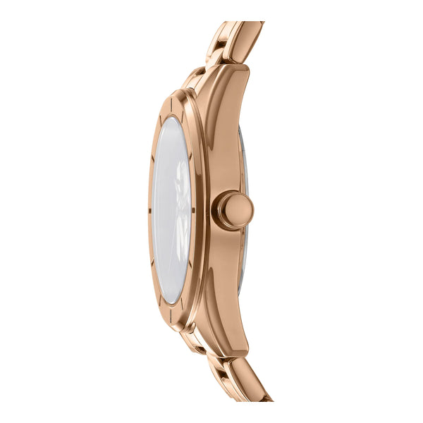 Nel cuore dell'eleganza urbana, dove le luci della città danzano con le stelle, emerge un orologio che incarna l'essenza della sofisticazione moderna. L'orologio DKNY Chambers Midi, con la sua affascinante tonalità oro rosa, cattura lo spirito della moda contemporanea con un tocco di grazia senza tempo. La sua cassa rotonda, che misura un delicato 34mm, racchiude un quadrante blu notte che evoca la bellezza serena di un cielo di mezzanotte. Questo orologio squisito non è solo un accessorio, è una dichiarazione di stile e fiducia per la donna esigente. Il vetro minerale offre una vista chiara del preciso movimento al quarzo sottostante, mentre la corona a tirare e spingere garantisce regolazioni dell'ora senza sforzo. Il cinturino in acciaio inossidabile, anch'esso in oro rosa, avvolge il polso con un senso di lusso raffinato, fissato da una chiusura deployante a farfalla con pulsante per facilità e comfort. Con una resistenza all'acqua fino a 50 metri, questo orologio è tanto versatile quanto bello, pronto ad accompagnarti dalle strade affollate della città a una serena serata vicino all'acqua. Il DKNY Chambers Midi è più di un orologio, è una celebrazione della moda e della funzione, una testimonianza dell'arte dell'orologeria che fonde senza sforzo eleganza e praticità quotidiana.