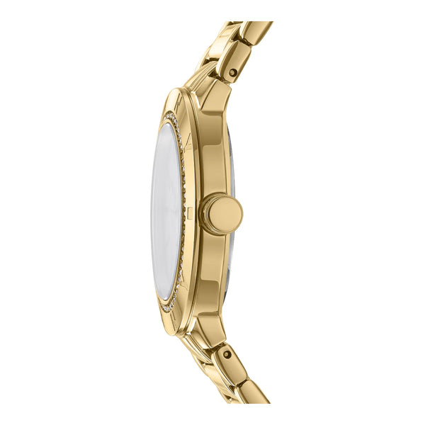 Nel cuore dell'eleganza urbana, dove la moda incontra la funzionalità, emerge un orologio che incarna lo spirito della sofisticazione moderna. Realizzato nel vibrante mondo di DKNY, l'orologio DK1L023 Eastside Logo è una testimonianza dell'impegno del marchio per lo stile e la precisione. Questo squisito orologio, progettato per la donna contemporanea, presenta una cassa rotonda in una lussuosa tonalità di oro giallo, che si abbina perfettamente al suo cinturino in acciaio inossidabile. Il cinturino, anch'esso in oro giallo abbinato, è fissato con una chiusura deployante a farfalla con pulsante, garantendo sia comfort che sicurezza. Il quadrante bianco antico, una tela di bellezza senza tempo, è adornato da tre lancette alimentate da un preciso movimento al quarzo, offrendo una perfetta combinazione di funzionalità ed eleganza. Con un diametro della cassa di 36 mm, questo orologio è l'accessorio perfetto per chiunque sia attento alla moda. Il cristallo minerale protegge il quadrante, mentre la corona a tirare e spingere aggiunge un tocco di fascino classico. Resistente all'acqua fino a 50 metri, questo orologio è tanto pratico quanto elegante, pronto ad accompagnarti nelle avventure della vita. L'orologio DK1L023 Eastside Logo è più di un semplice orologio, è una dichiarazione di design raffinato e chic urbano, catturando l'essenza dell'energia dinamica di New York e l'intramontabile fascino della moda.
