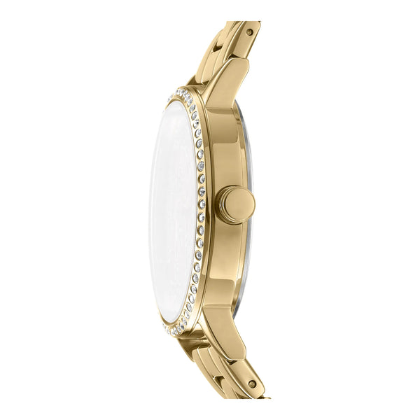 Il DKNY Soho Logo in oro giallo è una celebrazione dell'eleganza classica. La sua cassa rotonda da 36 mm e il cinturino in acciaio inossidabile emanano lusso, mentre il quadrante grigio argento aggiunge un tocco moderno. Resistente all'acqua fino a 50 metri, questo orologio è progettato per chi apprezza uno stile senza tempo e una funzionalità contemporanea, rendendolo un accessorio perfetto per ogni occasione.