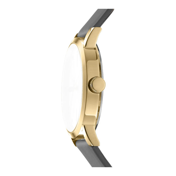 Abbraccia il fascino di New York con il DKNY Soho Midi. Questo elegante orologio, realizzato in una cassa rotonda in oro giallo, presenta un quadrante argento-grigio e un cinturino in pelle grigio topo. Il suo design raffinato, la resistenza all'acqua e il cristallo minerale lo rendono un capo di moda indispensabile.
