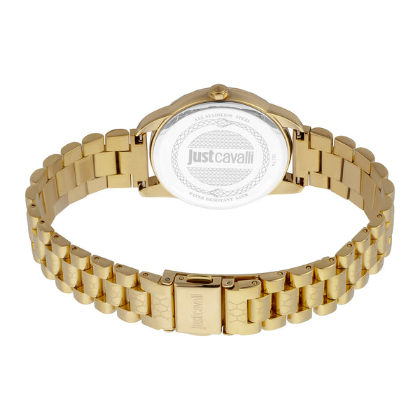 Nel regno dell'eleganza e della raffinatezza, il Just Cavalli Watch emerge come un faro di stile e grazia. Realizzato nel cuore della moda, questo squisito orologio è una testimonianza dell'impegno del brand per il lusso e il design. La cassa rotonda, immersa in una lucente tonalità di oro giallo, cattura l'essenza dell'opulenza, mentre il suo diametro di 34 mm garantisce una vestibilità perfetta per la donna moderna che apprezza sia la forma che la funzione. Con una resistenza all'acqua fino a 50 metri, questo orologio è tanto pratico quanto bello, pronto ad accompagnarti nelle avventure della vita. Il vetro minerale offre una vista chiara del quadrante color champagne, dove tre eleganti lancette scivolano senza sforzo, alimentate da un preciso movimento al quarzo. Il cinturino in acciaio inossidabile, anch'esso in un oro giallo abbinato, avvolge il polso con una chiusura deployante a farfalla, garantendo sia sicurezza che facilità di utilizzo. Questo Just Cavalli Watch è più di un semplice accessorio, è una dichiarazione di pensiero all'avanguardia nella moda, un pezzo che fonde senza sforzo l'eleganza senza tempo con un tocco contemporaneo. Che tu stia partecipando a una gala o godendo di una giornata informale, questo orologio è il compagno perfetto, incarnando lo spirito del lusso e l'arte di vivere con bellezza.