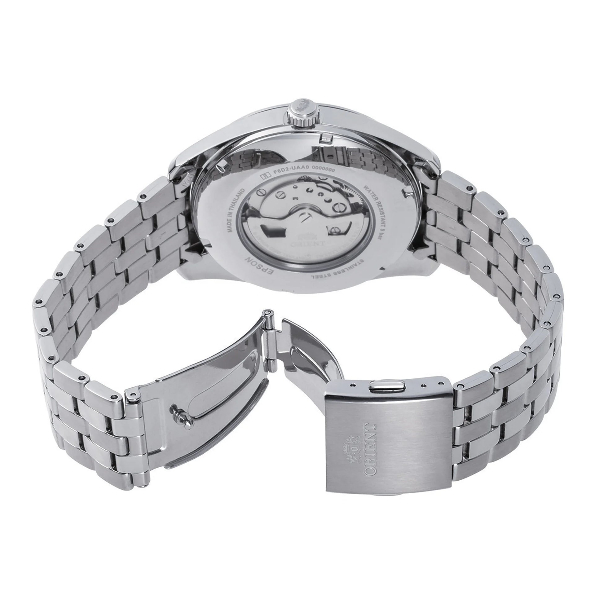 Nel regno degli orologi, dove l'eleganza incontra la funzionalità quotidiana, questo orologio si erge come testimonianza di design raffinato e stile senza tempo. Realizzato in un'armoniosa combinazione di grigio argento e blu profondo, cattura l'essenza della sofisticatezza casual. La cassa rotonda, con un diametro imponente di 43mm, è una tela di grigio argento, che emana una presenza sottile ma innegabile al polso. Il suo quadrante in cristallo minerale offre una vista chiara del quadrante blu intenso, una tonalità che ricorda cieli sereni e oceani infiniti, invitando chi lo indossa a perdersi nelle sue profondità. Il retro trasparente rivela la danza intricata del suo meccanismo interno, un mondo nascosto di precisione e arte. Resistente all'acqua fino a 50 metri, questo orologio è tanto versatile quanto elegante, pronto ad accompagnarti dalla sala riunioni alla spiaggia. Il cinturino in acciaio inossidabile, che si abbina alla cassa nella sua eleganza grigio argento, avvolge comodamente il polso, fissato da una fibbia deployante pieghevole con pulsante per facilità e sicurezza. Con una lunghezza del cinturino di 19cm e una larghezza di 22mm, offre un perfetto equilibrio tra comfort e stile, rendendolo un compagno ideale per l'uomo moderno che apprezza sia la forma che la funzione. La corona a tirare e spingere aggiunge un tocco di fascino classico, un cenno all'orologeria tradizionale, mentre il design complessivo parla a una sensibilità contemporanea. Questo orologio non è solo un accessorio, è una dichiarazione di gusto e discernimento, un riflesso di uno stile di vita che valorizza la qualità e l'eleganza sobria.