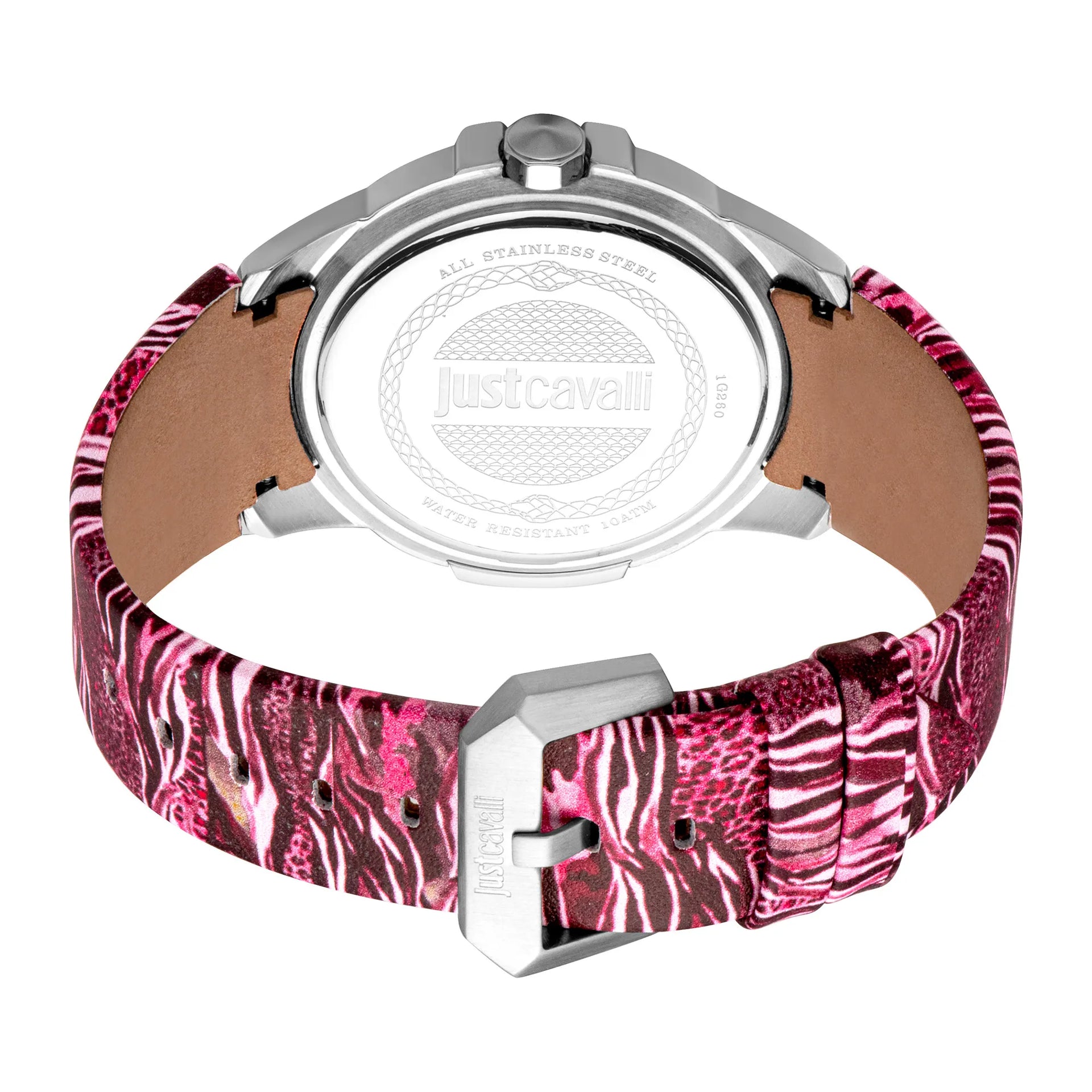 Nel regno degli orologi dove la moda incontra la funzione, questo Just Cavalli Watch emerge come un faro di stile e sofisticatezza. Realizzato nel cuore della tradizione orologiera svizzera, incarna l'essenza dell'eleganza moderna con un tocco di giovanile esuberanza. La cassa rotonda, immersa in una elegante tonalità grigio argento, cattura l'attenzione con il suo design raffinato, misurando un audace diametro di 44mm. Il suo quadrante in cristallo minerale offre una finestra chiara in un mondo di precisione, dove il quadrante viola brugo danza con la stessa vivace tonalità del cinturino in pelle, creando una sinfonia armoniosa di colori che parla allo spirito audace di chi lo indossa. Il tocco di viola brugo non è solo una scelta di colore, è una dichiarazione, un cenno agli audaci e agli avventurosi. Con una resistenza all'acqua fino a 100 metri, questo orologio è tanto versatile quanto elegante, pronto ad accompagnarti dalla sala riunioni alla spiaggia. Il movimento al quarzo, alimentato dal affidabile calibro VJ42, garantisce che il tempo sia sempre dalla tua parte, mentre il calendario della data ti mantiene sincronizzato con il mondo. La chiusura con fibbia ad ardiglione assicura l'orologio con una promessa di comfort e durata, rendendolo un compagno perfetto per l'individuo attento alla moda che valorizza sia la forma che la funzione. Questo Just Cavalli Watch non è solo un accessorio, è un'espressione di identità, una testimonianza dei coraggiosi e dei belli.
