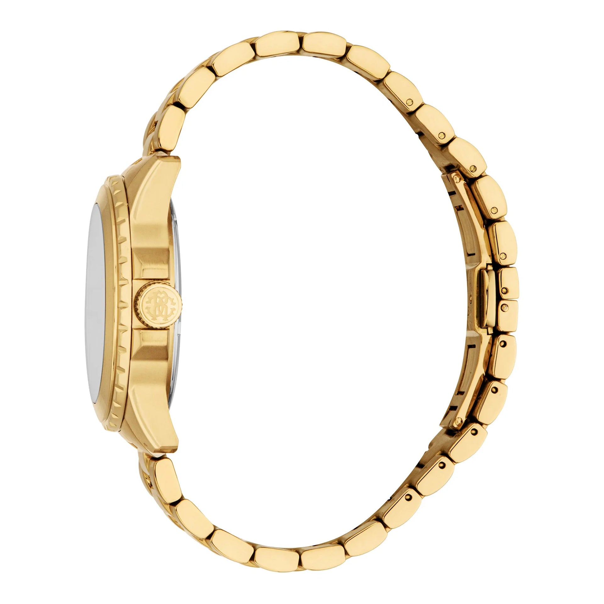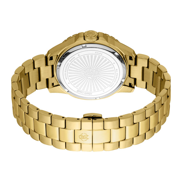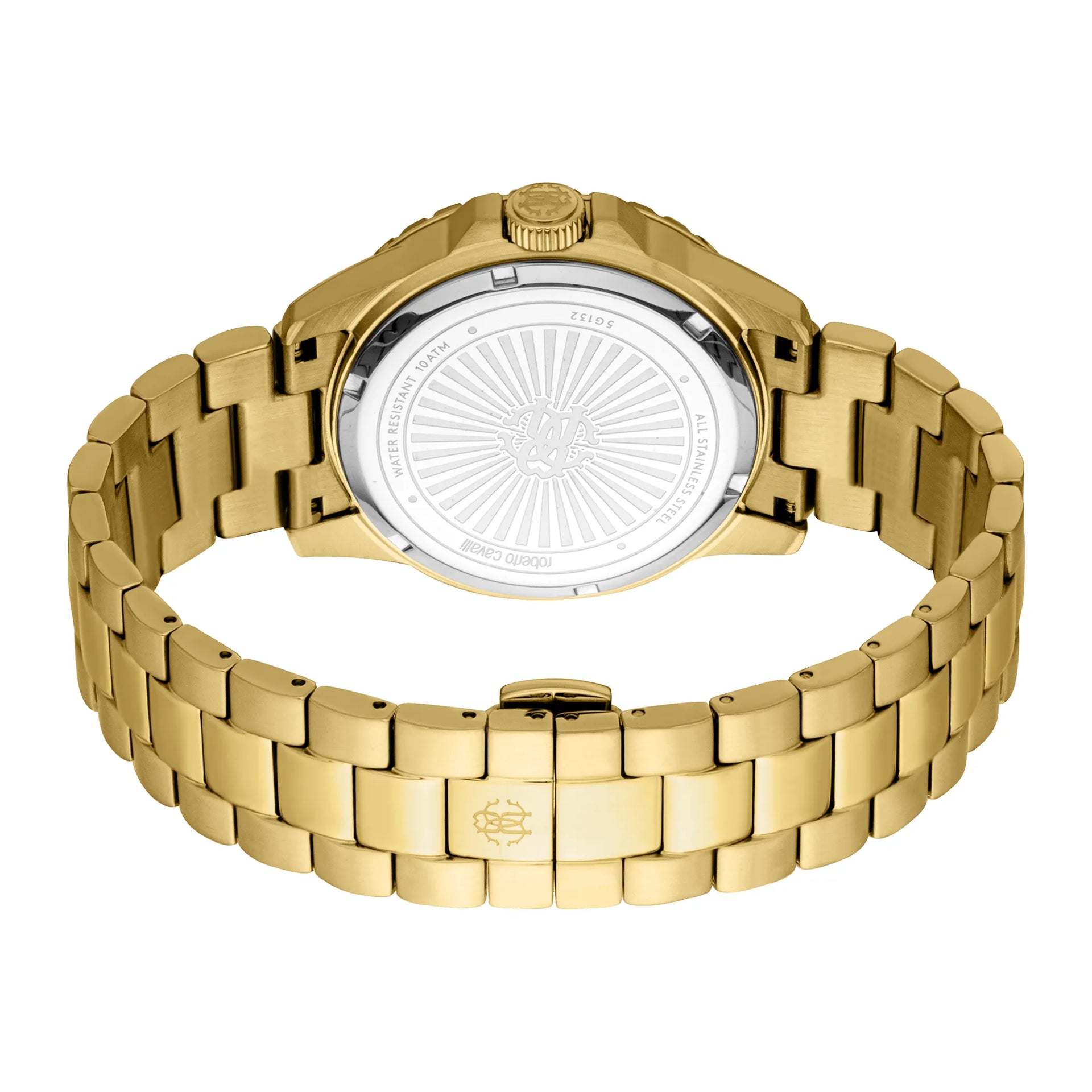 Nel mondo dell'orologeria, dove l'eleganza incontra la precisione, emerge un orologio che incarna l'essenza della sofisticazione e dello stile. Realizzato nel cuore dell'orologeria svizzera, questo orologio Roberto Cavalli Gent è una testimonianza dell'impegno del marchio per l'eccellenza e il design all'avanguardia. La cassa rotonda, immersa in una lussuosa tonalità di oro giallo, cattura lo sguardo con il suo diametro di 40 mm, emanando un'aura di opulenza e grandiosità. Il suo quadrante in cristallo minerale protegge un quadrante nero sorprendente, dove l'arte della misurazione del tempo è mostrata con precisione al quarzo. Il display analogico, completato da un calendario con data, garantisce che ogni momento sia catturato con chiarezza e grazia. Il cinturino in acciaio inossidabile, anch'esso in oro giallo, avvolge il polso con un senso di eleganza raffinata, fissato da una fibbia deployante a farfalla con pulsante per facilità e comfort. Resistente all'acqua fino a 100 metri, questo orologio non è solo una dichiarazione di moda ma un compagno affidabile per l'uomo moderno. La corona a tirare e spingere aggiunge un tocco di fascino classico, mentre il movimento calibro 2315 garantisce che il tempo sia sempre dalla tua parte. Questo orologio Roberto Cavalli è più di un accessorio, è una dichiarazione audace di stile e sofisticazione, perfetto per chi osa distinguersi in un mondo di conformità.