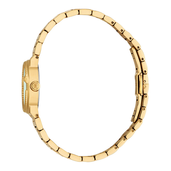 Nel mondo dell'eleganza e della raffinatezza, dove il tempo non è solo misurato ma celebrato, emerge un capolavoro che incarna l'essenza del lusso raffinato. Realizzato nel cuore della precisione svizzera, questo orologio Roberto Cavalli Lady è una testimonianza della dedizione del marchio al design all'avanguardia e all'artigianato squisito. La cassa rotonda, immersa nel bagliore opulento dell'oro giallo, cattura la luce ad ogni movimento, creando una danza di brillantezza sul polso. Con un diametro della cassa di 26 mm, offre una presenza delicata ma sorprendente, perfetta per la donna moderna che apprezza la sobrietà con un tocco di grandiosità. Il cristallo minerale protegge il quadrante verde bottiglia, una tonalità che sussurra di foreste profonde ed eleganza senza tempo, mentre il display a tre lancette, alimentato dal movimento al quarzo GL32 affidabile, garantisce precisione in ogni ticchettio. Il cinturino in acciaio inossidabile, anch'esso in oro giallo, avvolge il polso con un senso di continuità e grazia, fissato da una fibbia deployante a farfalla con pulsante per facilità e comfort. Resistente all'acqua fino a 50 metri, questo orologio non è solo un accessorio ma un compagno per le avventure della vita, fondendo funzionalità e moda. Una vera incarnazione della visione di Roberto Cavalli, questo orologio è più di un semplice orologio, è una dichiarazione di stile, una celebrazione della femminilità e un omaggio al fascino senza tempo dell'artigianato svizzero.