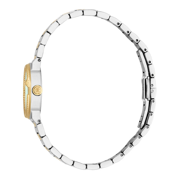 Nel mondo della moda, dove l'eleganza incontra la precisione, emerge un orologio che incarna l'essenza della sofisticazione e dello stile. Realizzato nel cuore dell'orologeria svizzera, questo orologio Roberto Cavalli Lady è una testimonianza di design raffinato e artigianato squisito. La sua cassa rotonda, immersa in un lucente grigio argento, misura un delicato diametro di 26 mm, completando perfettamente il polso femminile. Il vetro minerale rivela un quadrante verde bottiglia ipnotico, una tonalità che sussurra eleganza senza tempo e profondità. Sotto la sua superficie, il movimento al quarzo GL32 affidabile orchestra la danza delle tre lancette, garantendo precisione a ogni ticchettio. Il cinturino in acciaio inossidabile, anch'esso in un grigio argento abbinato, avvolge il polso con grazia, fissato da una chiusura deployante a farfalla con pulsante per facilità e comfort. Con una resistenza all'acqua fino a 50 metri, questo orologio non è solo una dichiarazione di moda ma un compagno versatile per la donna moderna. La corona a tirare e spingere aggiunge un tocco di praticità, permettendo regolazioni facili. Questo orologio Roberto Cavalli è più di un accessorio, è una celebrazione della femminilità e della moda, un pezzo che parla al cuore di chi apprezza le cose più raffinate della vita.