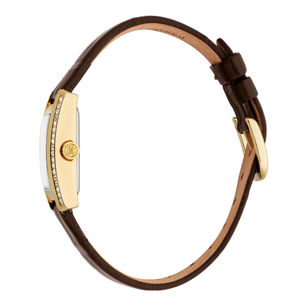 Nel mondo della moda, dove l'eleganza incontra l'innovazione, emerge un orologio che cattura l'essenza della sofisticazione e dello stile. Realizzato nel cuore dell'orologeria svizzera, questo orologio Roberto Cavalli Lady è una testimonianza di design raffinato e artigianato squisito. La sua cassa rettangolare, immersa in una lussuosa tonalità di oro giallo, emana un'aura di opulenza, rendendolo un accessorio perfetto per la donna moderna che apprezza le cose più raffinate della vita. Il cristallo minerale protegge un quadrante grigio-argento, dove tre lancette danzano con grazia, alimentate da un preciso movimento al quarzo con calibro GL34. La corona a tirare e spingere aggiunge un tocco di praticità, assicurando che il tempo sia sempre a portata di mano. Avvolgendo il polso con un cinturino in pelle marrone cioccolato, questo orologio offre un delizioso contrasto con la sua cassa dorata, fissata con una classica fibbia ad ardiglione per una vestibilità confortevole. Resistente all'acqua, si presenta come un compagno affidabile per ogni occasione, sia che tu stia navigando per le affollate strade della città o partecipando a una elegante soirée. Questo orologio Roberto Cavalli Lady è più di un semplice orologio, è una dichiarazione di pensiero all'avanguardia nella moda e di eleganza senza tempo, progettato per chi osa distinguersi nella folla.