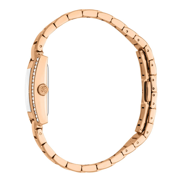 Nel mondo della moda, dove l'eleganza incontra l'innovazione, emerge un orologio che cattura l'essenza della sofisticazione e dello stile. Realizzato nel cuore dell'orologeria svizzera, questo orologio Roberto Cavalli Lady è una testimonianza di design raffinato e artigianato squisito. La sua cassa rettangolare, immersa nel caldo bagliore dell'oro rosa, emana un fascino senza tempo che è sia moderno che classico. Il quadrante in cristallo minerale offre una vista chiara del quadrante grigio-argento, dove tre lancette danzano con grazia, alimentate dalla precisione di un movimento al quarzo con calibro GL34. La corona a tirare e spingere aggiunge un tocco di praticità, garantendo facilità d'uso senza compromettere l'eleganza. Avvolgendo il polso con un cinturino in acciaio inossidabile, anch'esso in oro rosa, questo orologio è fissato con una fibbia deployante a farfalla con pulsante, offrendo sia sicurezza che stile. Resistente all'acqua, è progettato per accompagnare la donna moderna in ogni aspetto della sua giornata, dalle frenetiche strade della città alle serene serate di gala. Questo orologio Roberto Cavalli è più di un semplice orologio, è una dichiarazione di pensiero all'avanguardia nella moda, una celebrazione della femminilità e un simbolo del gusto impeccabile di chi lo indossa.