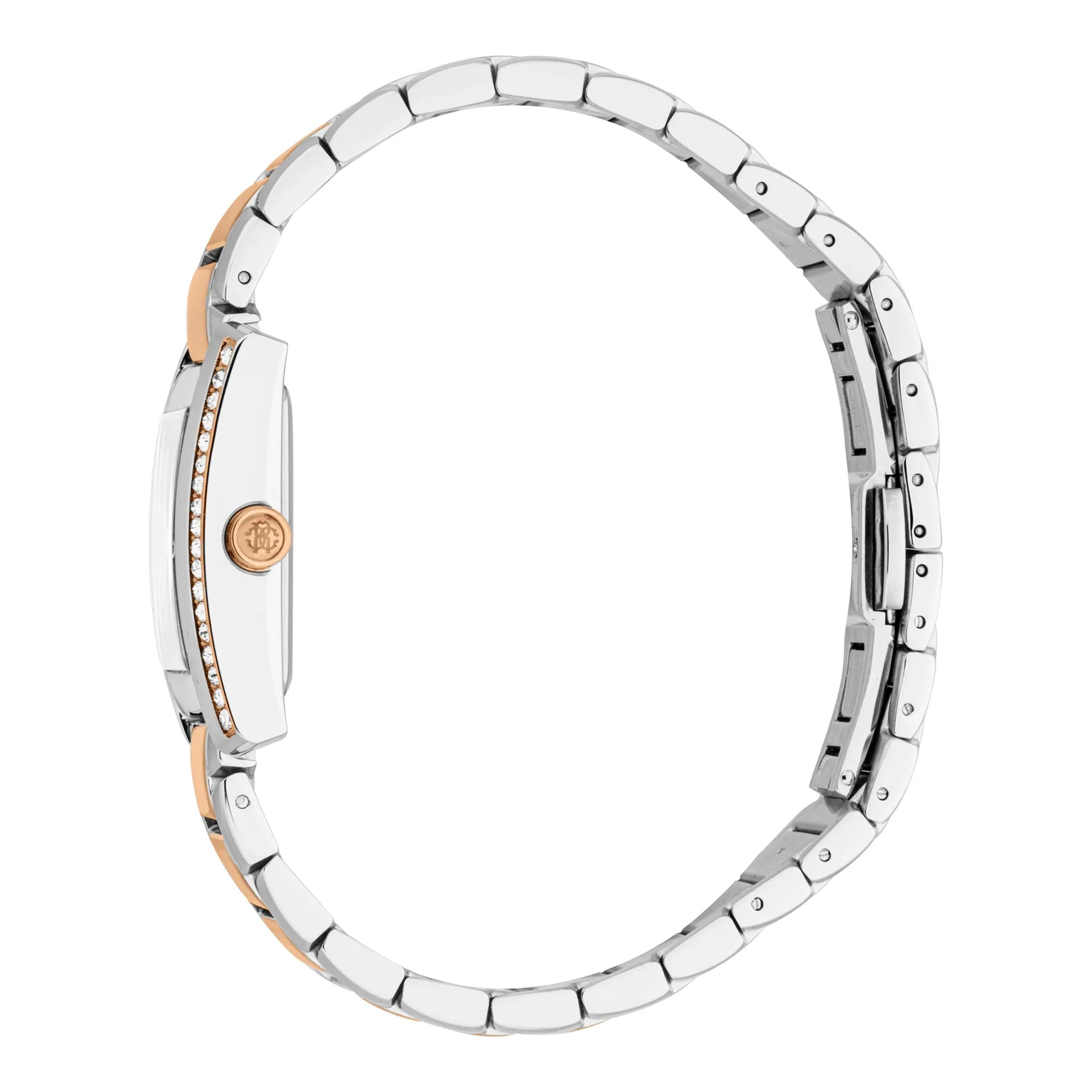 Nel mondo dell'alta moda, dove l'eleganza incontra l'innovazione, emerge un orologio che incarna l'essenza della sofisticazione e dello stile. Realizzato nel cuore dell'eccellenza dell'orologeria svizzera, questo orologio Roberto Cavalli Lady è una testimonianza di design raffinato e fascino senza tempo. La cassa rettangolare, immersa in una elegante tonalità grigio argento, emana un fascino moderno ma classico, che si abbina perfettamente al polso aggraziato della donna contemporanea. Il quadrante in cristallo minerale offre una finestra chiara sull'anima dell'orologio, dove il quadrante grigio argento danza con la precisione di un movimento al quarzo, alimentato dal affidabile calibro GL34. La visualizzazione a tre lancette scivola senza sforzo, segnando ogni momento con grazia e precisione. Avvolgendo il polso c'è un cinturino in acciaio inossidabile, la sua finitura in oro rosa aggiunge un tocco di calore e lusso, fissato con una chiusura deployante a farfalla con pulsante per facilità ed eleganza. Resistente all'acqua, questo orologio non è solo un accessorio ma un compagno per ogni avventura, sia che si navighi nella giungla urbana o si partecipi a un gala. La corona a tirare e spingere offre una fusione perfetta di funzionalità e stile, garantendo che questo orologio sia tanto pratico quanto bello. Con la sua armoniosa combinazione di argento e oro rosa, questo orologio Roberto Cavalli Lady è più di un orologio, è una dichiarazione di pensiero all'avanguardia nella moda e una celebrazione dello spirito della donna moderna.
