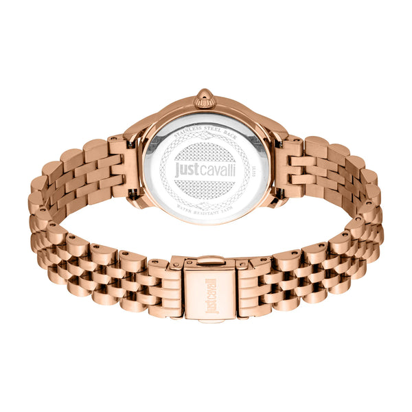 Nel regno della moda, dove l'eleganza incontra l'audacia, emerge un orologio che cattura l'essenza della sofisticazione moderna. Realizzato nel cuore dell'eccellenza orologiera svizzera, questo Just Cavalli Watch della illustre collezione Animalier è una testimonianza dell'impegno del marchio per un design audace e una lavorazione raffinata. La cassa rotonda, immersa in una lussuosa tonalità oro rosa, emana un senso di fascino senza tempo, completando perfettamente il quadrante verde vibrante che aggiunge un tocco di colore a qualsiasi ensemble. Questo contrasto sorprendente non solo mette in risalto lo stile all'avanguardia dell'orologio, ma richiama anche un'estetica giocosa e ispirata al pop, che è sia audace che chic. Il cinturino in acciaio inossidabile, anch'esso in oro rosa, avvolge elegantemente il polso, fissato da una fibbia deployante pieghevole con pulsante per facilità e comfort. Con un diametro della cassa di 30 mm, questo orologio è progettato per la donna moderna che apprezza sia lo stile che la sostanza. Il cristallo minerale protegge il quadrante, garantendo chiarezza e durata, mentre la corona a tirare e spingere offre regolazioni del tempo senza sforzo. Resistente all'acqua e alimentato da un preciso movimento al quarzo, questo orologio è tanto funzionale quanto alla moda. Una vera incarnazione dello spirito audace di Just Cavalli, questo orologio non è solo un accessorio, ma una dichiarazione di carattere e fiducia, pronto ad accompagnarti in ogni avventura con il suo fascino e la sua grazia innegabili.