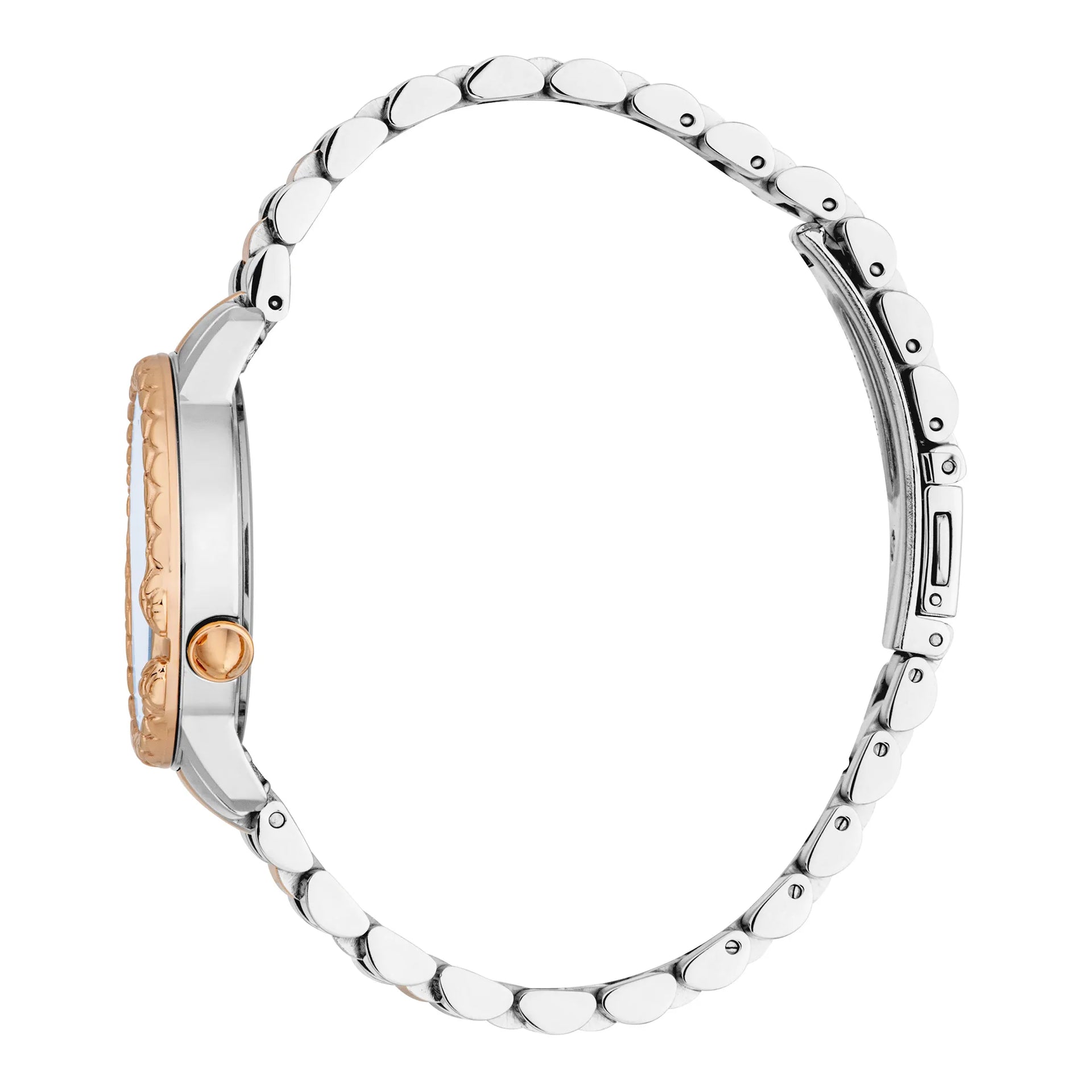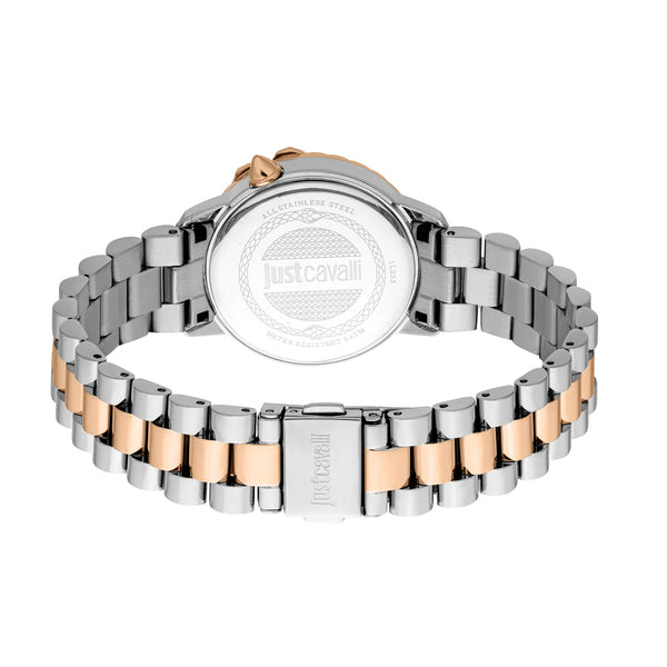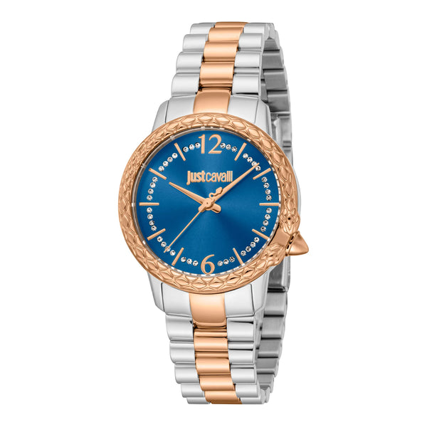 Nel regno della moda, dove l'eleganza incontra l'audacia, emerge un orologio che cattura l'essenza della sofisticazione moderna. Realizzato nel cuore dello stile, questo Just Cavalli Watch della collezione Animalier è una testimonianza del talento del marchio per l'eccezionale. La cassa rotonda, immersa in una lussuosa tonalità oro rosa, emana un calore che è allo stesso tempo accogliente e audace, completando perfettamente il design raffinato di questo squisito accessorio. Con un diametro della cassa di 32 mm, si posa con grazia sul polso, una dichiarazione sottile ma sorprendente di pensiero all'avanguardia nella moda. Il quadrante blu notte, che ricorda un cielo stellato, aggiunge un tocco di mistero e fascino, mentre il cristallo minerale garantisce chiarezza e durata. Il cinturino in acciaio inossidabile, anch'esso in oro rosa, avvolge il polso con un senso di continuità ed eleganza, fissato da una fibbia deployante a farfalla con pulsante per facilità e comfort. Resistente all'acqua fino a 50 metri, questo orologio è tanto pratico quanto bello, pronto ad accompagnarti nelle avventure della vita. Il movimento al quarzo garantisce precisione, mentre il display a tre lancette offre un tocco classico a questo capolavoro moderno. Simbolo di tenacia e stile, questo orologio non è solo un accessorio, ma una dichiarazione di individualità e grazia.
