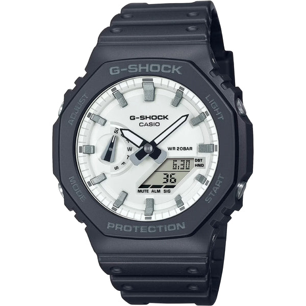Progettato per l'avventura, questo orologio sportivo Casio nero da 49mm con cassa rotonda presenta un quadrante bianco, un cinturino in resina resistente e un vetro minerale, con corona a estrazione e spinta e un movimento costruito per l'affidabilità—resistenza all'acqua da sub fino a 200 metri garantisce che eccella ovunque ti porti il tuo viaggio.