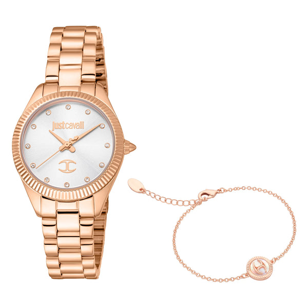 Nel regno dell'eleganza e della sofisticazione, l'orologio Just Cavalli della collezione Glam Chic emerge come un faro di stile e grazia. Realizzato nel cuore della moda, questo squisito orologio è una testimonianza dell'impegno del marchio per il lusso e il design. La cassa rotonda, immersa in una calda tonalità oro rosa, cattura l'essenza della femminilità moderna, mentre il suo diametro di 30 mm garantisce una presenza delicata ma d'impatto al polso. Con una resistenza all'acqua fino a 50 metri, promette sia bellezza che funzionalità, rendendolo un compagno perfetto per ogni occasione. Il cristallo minerale protegge il quadrante grigio-argento, dove tre lancette danzano con grazia, alimentate da un preciso movimento al quarzo. Il cinturino in acciaio inossidabile, anch'esso in oro rosa, avvolge il polso con una chiusura deployante a farfalla, offrendo sia sicurezza che facilità di utilizzo. Questo orologio Just Cavalli non è solo un accessorio, è una dichiarazione di pensiero all'avanguardia nella moda, un pezzo che incarna lo spirito dell'eleganza contemporanea e il fascino del design senza tempo.