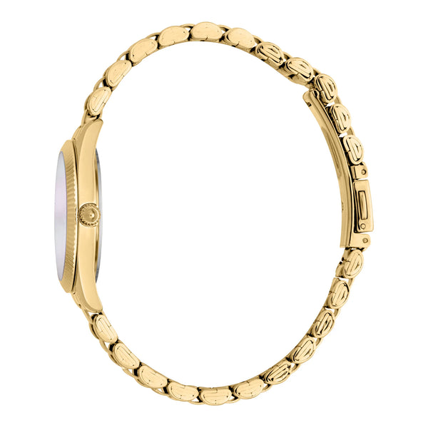 Nel mondo della moda, dove l'eleganza incontra l'audacia, emerge un orologio che cattura l'essenza della sofisticazione e dello stile. Realizzato nel cuore del design italiano, questo Just Cavalli Watch della collezione JC1L267 Pacentro è una testimonianza dell'impegno del marchio verso il lusso e l'innovazione. La cassa rotonda, immersa in una lussuosa tonalità di oro giallo, emana un senso di fascino senza tempo, completando perfettamente il design raffinato dell'orologio. Con un diametro della cassa di 30 mm, si posa con grazia sul polso, rendendolo un accessorio ideale per la donna moderna che apprezza sia la moda che la funzionalità. Il cinturino in acciaio inossidabile, anch'esso in una tonalità di oro giallo abbinata, aggiunge un tocco di opulenza, mentre la chiusura deployante a farfalla con pulsante garantisce una vestibilità sicura e confortevole. Il quadrante bianco antico, una tela di eleganza sobria, è adornato da tre lancette alimentate da un preciso movimento al quarzo, offrendo una fusione perfetta di stile e precisione. Resistente all'acqua fino a 50 metri, questo orologio è tanto versatile quanto bello, pronto ad accompagnarti dalla sala riunioni a una serata fuori. Il cristallo minerale aggiunge uno strato di durabilità, proteggendo l'orologio dagli stress dell'uso quotidiano. Questo Just Cavalli Watch non è solo un orologio, è una dichiarazione di eleganza audace, un riflesso del carattere unico di chi lo indossa e del suo senso della moda.