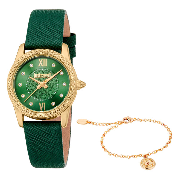Nel regno della moda, dove l'eleganza incontra l'audacia, emerge un orologio che cattura l'essenza della sofisticazione e della grinta. Realizzato nel cuore dell'orologeria svizzera, questo Just Cavalli Watch della collezione JC1L360 Sublime Animalier è una testimonianza di design raffinato e gusto squisito. La cassa rotonda, immersa in una lussuosa tonalità di oro giallo, emana un'aura di opulenza, completando perfettamente il vibrante cinturino in pelle verde bottiglia. Questa armoniosa combinazione di colori crea un contrasto visivo sorprendente, rendendolo un vero pezzo di dichiarazione per la donna moderna. Il quadrante, anch'esso in un affascinante verde bottiglia, è una tela di eleganza, dove l'indicazione a tre lancette danza con grazia sotto la protezione di un cristallo minerale. Con un diametro della cassa di 30 mm, si posa delicatamente sul polso, offrendo sia comfort che stile. La chiusura con fibbia ad ardiglione garantisce una vestibilità sicura, mentre la corona a estrazione e spinta aggiunge un tocco di praticità al suo design. Resistente all'acqua e alimentato da un preciso movimento al quarzo, questo orologio non è solo un accessorio ma un compagno per ogni avventura. Abbraccia il fascino della moda con questo squisito orologio, dove ogni sguardo al tuo polso è un ricordo del coraggio e della bellezza.