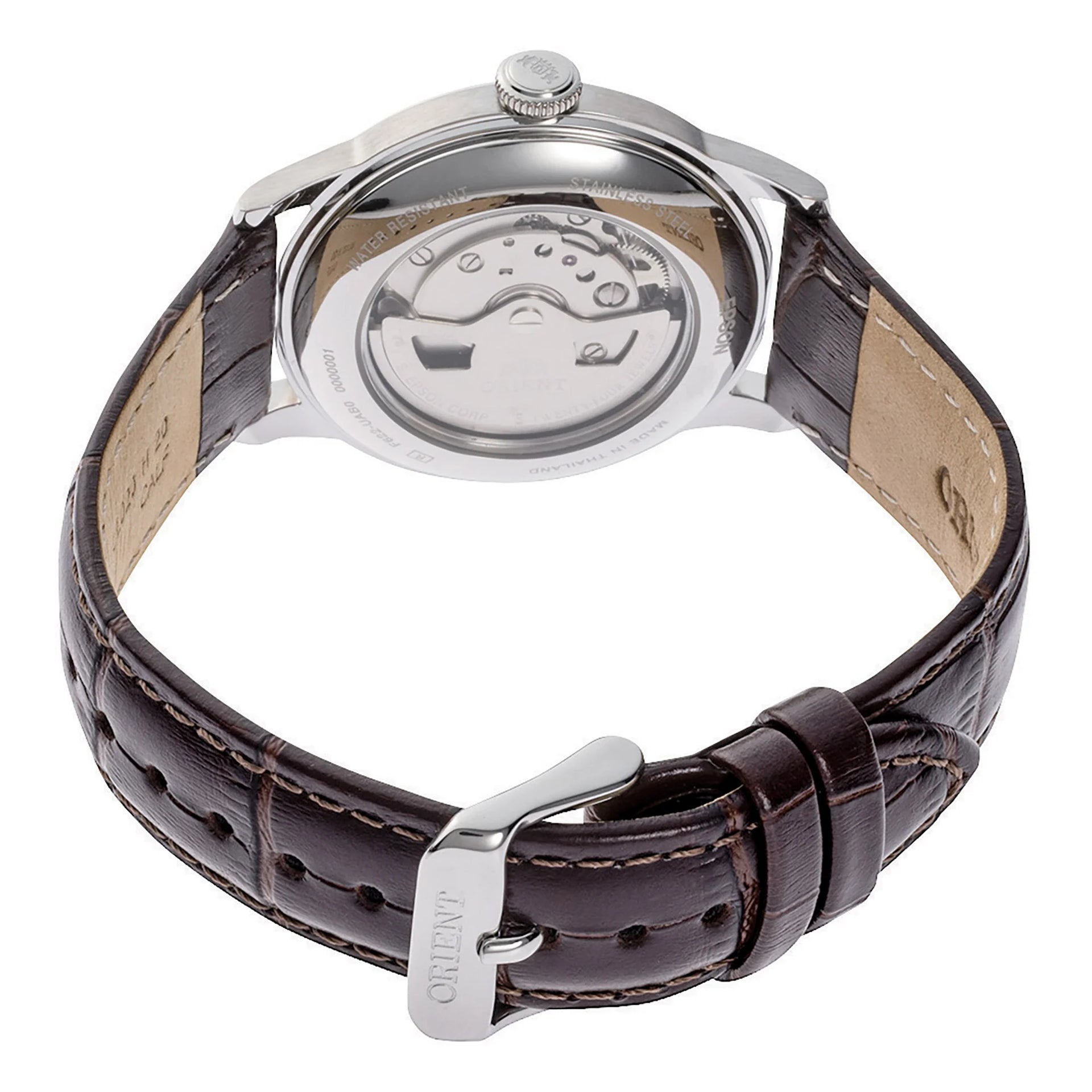 Nel regno dell'eleganza senza tempo, l'ORIENT AP01 Bambino 38 Small Seconds emerge come un faro di sofisticazione classica. Realizzato con meticolosa attenzione ai dettagli, questo orologio incarna l'essenza del design raffinato. La sua cassa rotonda, immersa in una sottile tonalità grigio argento, si abbina perfettamente al cinturino in pelle marrone cioccolato, creando un'armoniosa combinazione di colori che parla all'uomo esigente. Il diametro della cassa di 38 mm offre una presenza equilibrata al polso, mentre il cristallo minerale garantisce chiarezza e durata. Sotto la superficie, il movimento meccanico, alimentato dal calibro F6222 con 24 rubini, promette precisione e affidabilità, potenziato sia dalla carica manuale che automatica. Il quadrante beige, adornato con un calendario della data e tre lancette, emana un fascino vintage che è sia sobrio che accattivante. Il fondello trasparente offre uno sguardo sulle intricate meccaniche di questo capolavoro, una testimonianza della sua maestria artigianale. Resistente all'acqua e dotato di corona a tirare e spingere, questo orologio è progettato per chi apprezza le cose più raffinate della vita. La chiusura con fibbia ad ardiglione garantisce una vestibilità sicura, rendendolo un compagno perfetto per ogni occasione. Con una precisione giornaliera di +25/-15, l'ORIENT AP01 Bambino 38 Small Seconds non è solo un orologio, è una dichiarazione di stile e sofisticazione, un tributo al fascino duraturo dell'orologeria classica.