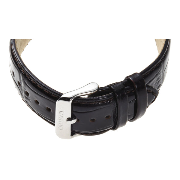 Nel regno dell'eleganza senza tempo, l'orologio ORIENT AG02 Open Heart si erge come testimonianza di sofisticazione classica. Realizzato con precisione, questo capolavoro incarna l'essenza del design raffinato, fondendo senza soluzione di continuità tradizione e modernità. La cassa rotonda color argento-grigio, con un diametro di 41 mm, emana una presenza sottile ma imponente al polso, mentre il cristallo minerale offre una vista chiara dei meccanismi intricati all'interno. Il fondello trasparente rivela il cuore dell'orologio, una meraviglia meccanica alimentata dal calibro F6T22, con 22 rubini che garantiscono un funzionamento fluido e una precisione giornaliera di +25/-15 secondi. Il cinturino in pelle nera, fissato con una fibbia ad ardiglione, completa il quadrante nero elegante, creando un equilibrio armonioso di colore e texture. Questo orologio ORIENT Classic non è solo un segnatempo, è una dichiarazione di stile e sofisticazione, progettato per il gentiluomo esigente che apprezza l'arte dell'orologeria. Con una resistenza all'acqua fino a 50 metri, è tanto pratico quanto elegante, rendendolo un compagno perfetto per ogni occasione. La corona a tirare e spingere aggiunge un tocco di comodità, mentre le funzioni a carica manuale e automatica offrono versatilità per l'uomo moderno. Questo orologio è una celebrazione dell'artigianato, un pezzo che trascende il tempo e le mode, catturando l'essenza dell'eleganza classica in ogni ticchettio delle sue tre lancette.