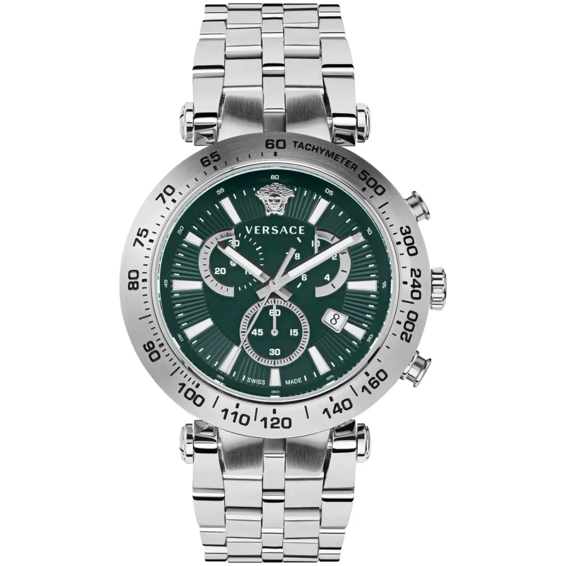 L'orologio grigio argento di Versace è un capolavoro di design raffinato. La cassa rotonda da 46 mm e il cinturino in acciaio inossidabile abbinato creano una silhouette elegante, mentre il quadrante verde bottiglia aggiunge un tocco di colore. Resistente all'acqua fino a 50 metri, è una perfetta combinazione di eleganza e modernità.
