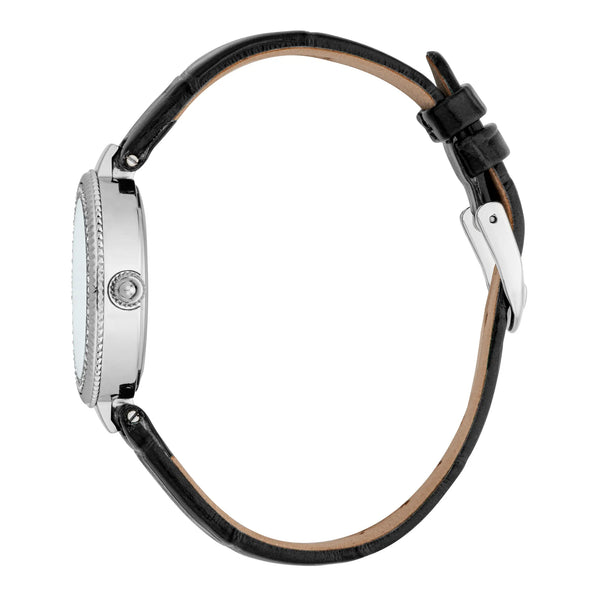 Nel regno della moda, dove l'eleganza incontra l'audacia, emerge un orologio che cattura l'essenza della sofisticazione moderna. Questo Just Cavalli Watch, dalla illustre collezione Glam Chic, è una testimonianza dell'impegno del marchio per lo stile e l'innovazione. Realizzato con un design raffinato, la sua cassa rotonda argento-grigia, con un delicato diametro di 30 mm, emana una presenza sottile ma sorprendente al polso. Il quadrante in cristallo minerale offre una vista chiara del quadrante azzurro chiaro, una tonalità che aggiunge un tocco di stile contemporaneo, che ricorda un cielo sereno in una giornata luminosa. Il movimento al quarzo a tre lancette garantisce precisione, mentre la corona a tirare e spingere consente regolazioni dell'ora senza sforzo. Racchiuso in una cassa resistente all'acqua fino a 50 metri, questo orologio è tanto pratico quanto bello. Il cinturino in pelle nera, fissato con una fibbia ad ardiglione, offre una vestibilità comoda e sicura, rendendolo un accessorio ideale per la donna attenta alla moda. Questo orologio non è solo un dispositivo per misurare il tempo, è una dichiarazione di stile, un riflesso del carattere audace e del gusto raffinato di chi lo indossa. Che sia abbinato a un ensemble casual o a un elegante abito da sera, questo Just Cavalli Watch è progettato per attirare l'attenzione e suscitare conversazioni, incarnando lo spirito di chi osa distinguersi nella folla.