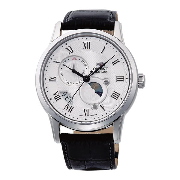 Nel regno dell'orologeria, dove il tempo è sia una scienza che un'arte, l'ORIENT Classic AK00 Sun & Moon emerge come una testimonianza di eleganza senza tempo e maestria meccanica. Realizzato con precisione, questo orologio è una fusione armoniosa di tradizione e innovazione, progettato per il gentiluomo esigente che apprezza le cose più raffinate della vita. La sua cassa rotonda, immersa in un sofisticato grigio argento, racchiude un mondo di meccanismi intricati visibili attraverso un fondello trasparente, invitandoti a meravigliarti della danza dei suoi 22 gioielli. Il quadrante bianco, una tela di purezza, è adornato con un calendario giorno e data, offrendo uno sguardo nel balletto celeste del sole e della luna. Questo orologio classico non riguarda solo il misurare il tempo, ma il viverlo. Il movimento meccanico, alimentato dal calibro F6B24, garantisce precisione con una accuratezza giornaliera di +25/-15 secondi, mentre l'opzione per la carica manuale e automatica soddisfa la preferenza del conoscitore. Incassato in cristallo zaffiro, l'orologio è una fortezza contro gli elementi, vantando una resistenza all'acqua fino a 50 metri. Il cinturino in pelle nera, fissato con una fibbia déployante pieghevole con pulsante, avvolge il polso con una promessa di comfort e stile. Questo orologio ORIENT è più di un accessorio, è una dichiarazione di gusto raffinato e un compagno per chi naviga il mondo con grazia e sicurezza.