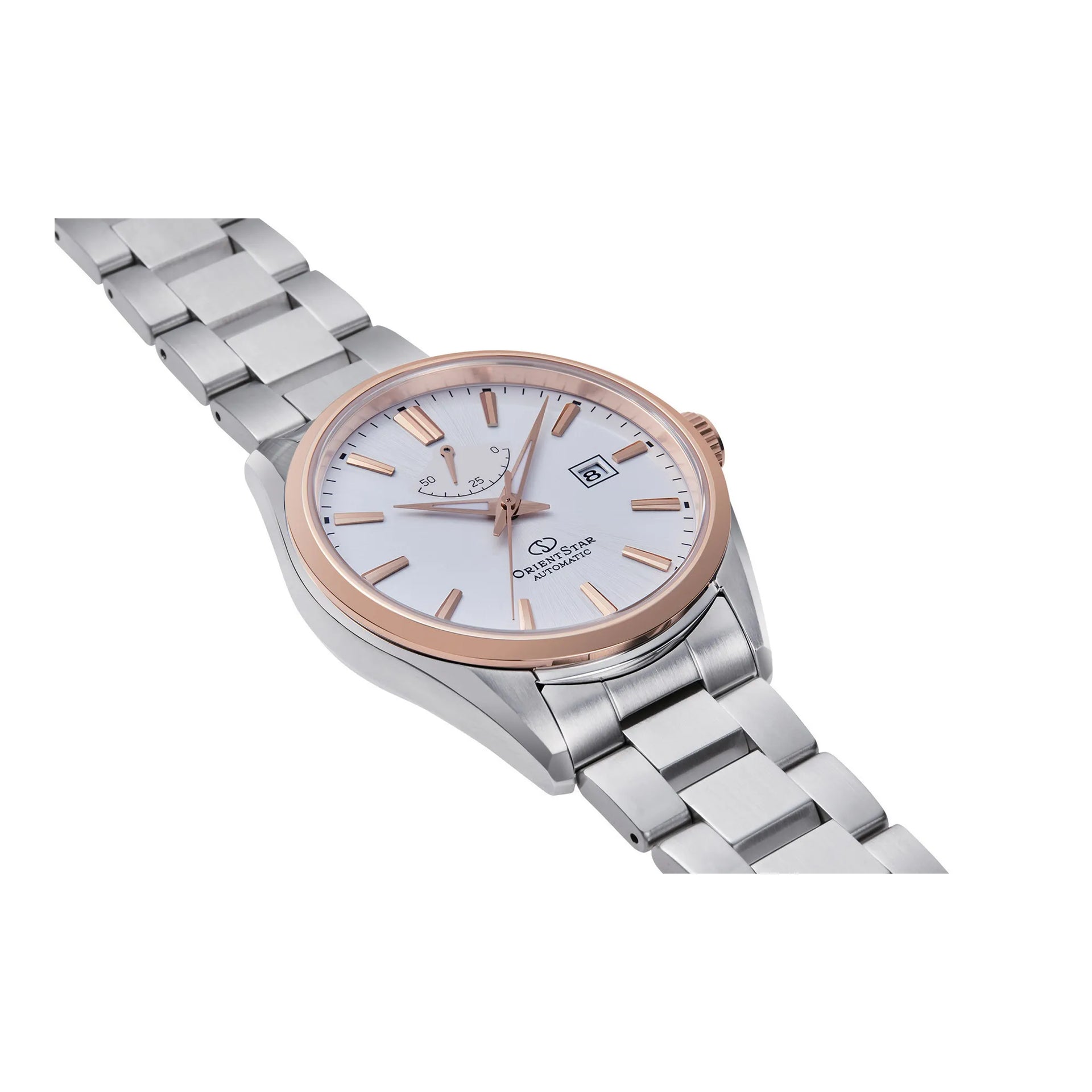 Nel regno degli orologi, dove l'eleganza incontra la funzionalità quotidiana, questo orologio si erge come testimonianza di design raffinato e stile senza tempo. Realizzato in un'armoniosa combinazione di tonalità grigio argento, la sua cassa rotonda, con un diametro sicuro di 42 mm, emana una sottile sofisticazione che completa qualsiasi abbigliamento casual. Il cristallo zaffiro, noto per la sua chiarezza e resistenza, protegge un quadrante che rispecchia la palette di colori serena della cassa, creando un flusso visivo senza soluzione di continuità. Un fondello trasparente rivela la danza intricata del suo meccanismo interno, una caratteristica che invita all'ammirazione di chi apprezza l'arte dell'orologeria. Il cinturino in acciaio inossidabile, con la sua tonalità grigio argento abbinata, avvolge comodamente il polso, fissato da una fibbia deployante pieghevole con pulsante per facilità e sicurezza. Con una resistenza all'acqua fino a 50 metri, questo orologio è tanto pratico quanto elegante, pronto ad accompagnarti nelle varie avventure della vita. La corona a tirare e spingere offre una connessione tattile al passare del tempo, mentre le dimensioni del cinturino—19 cm di lunghezza e 21 mm di larghezza—garantiscono una vestibilità perfetta. Questo orologio non è solo un accessorio, è una dichiarazione di eleganza sobria, un riflesso di uno stile di vita che valorizza sia la forma che la funzione, e un compagno che promette di tenere il passo con il ritmo della tua giornata.