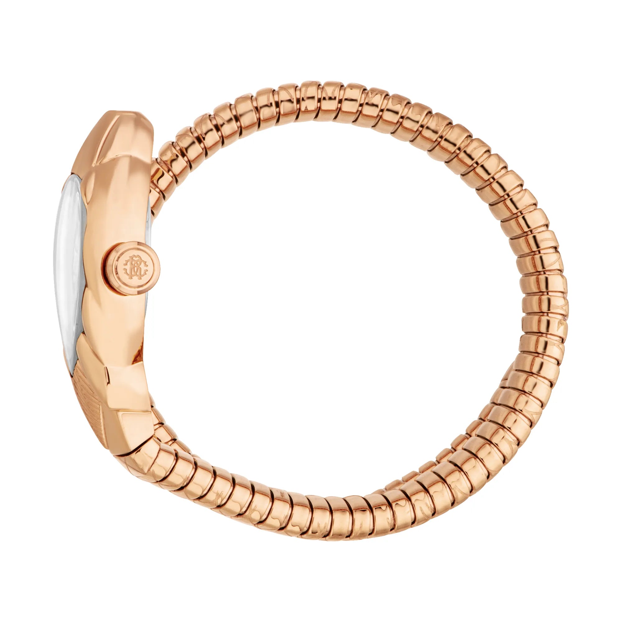 Abbraccia il calore dell'oro rosa con l'orologio Roberto Cavalli Lady. La sua cassa ovale e il cinturino, abbinati a un quadrante grigio-argento, creano una sinfonia di eleganza. Resistente all'acqua e protetto da un cristallo minerale, è un pezzo senza tempo per la donna esigente.