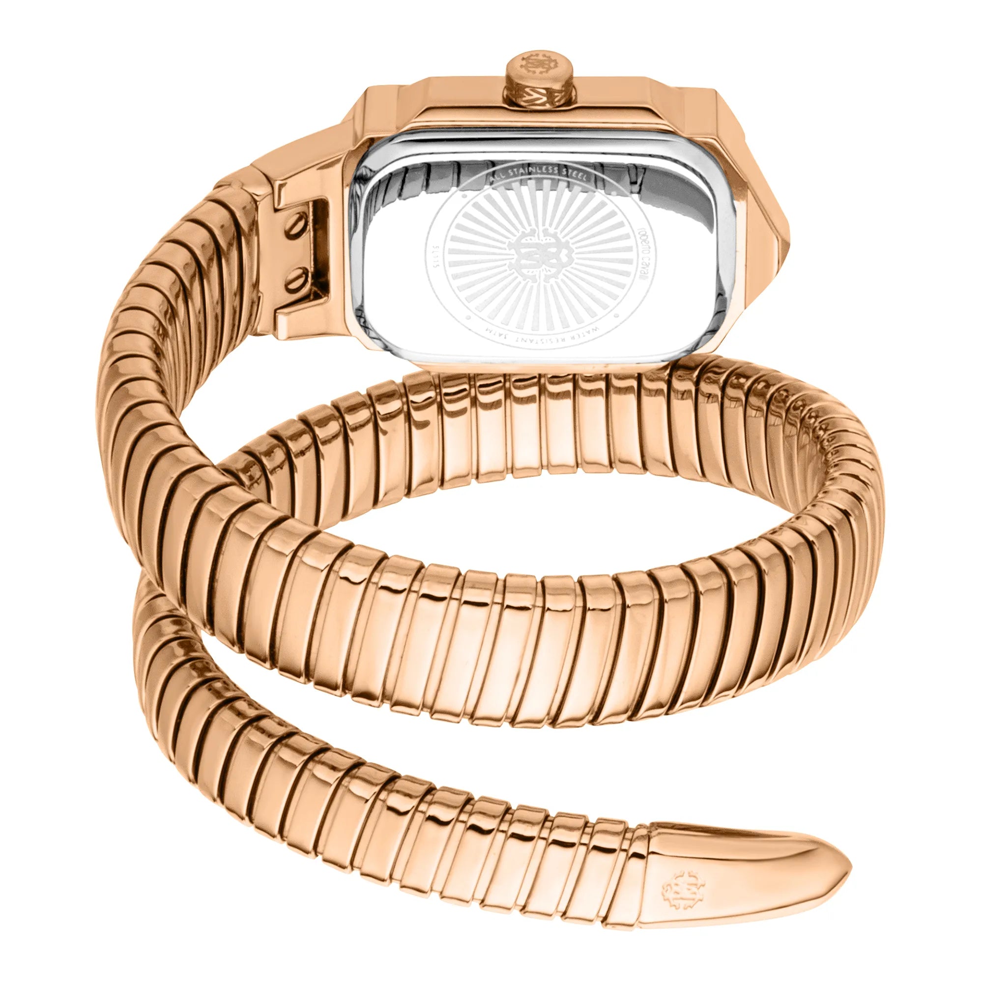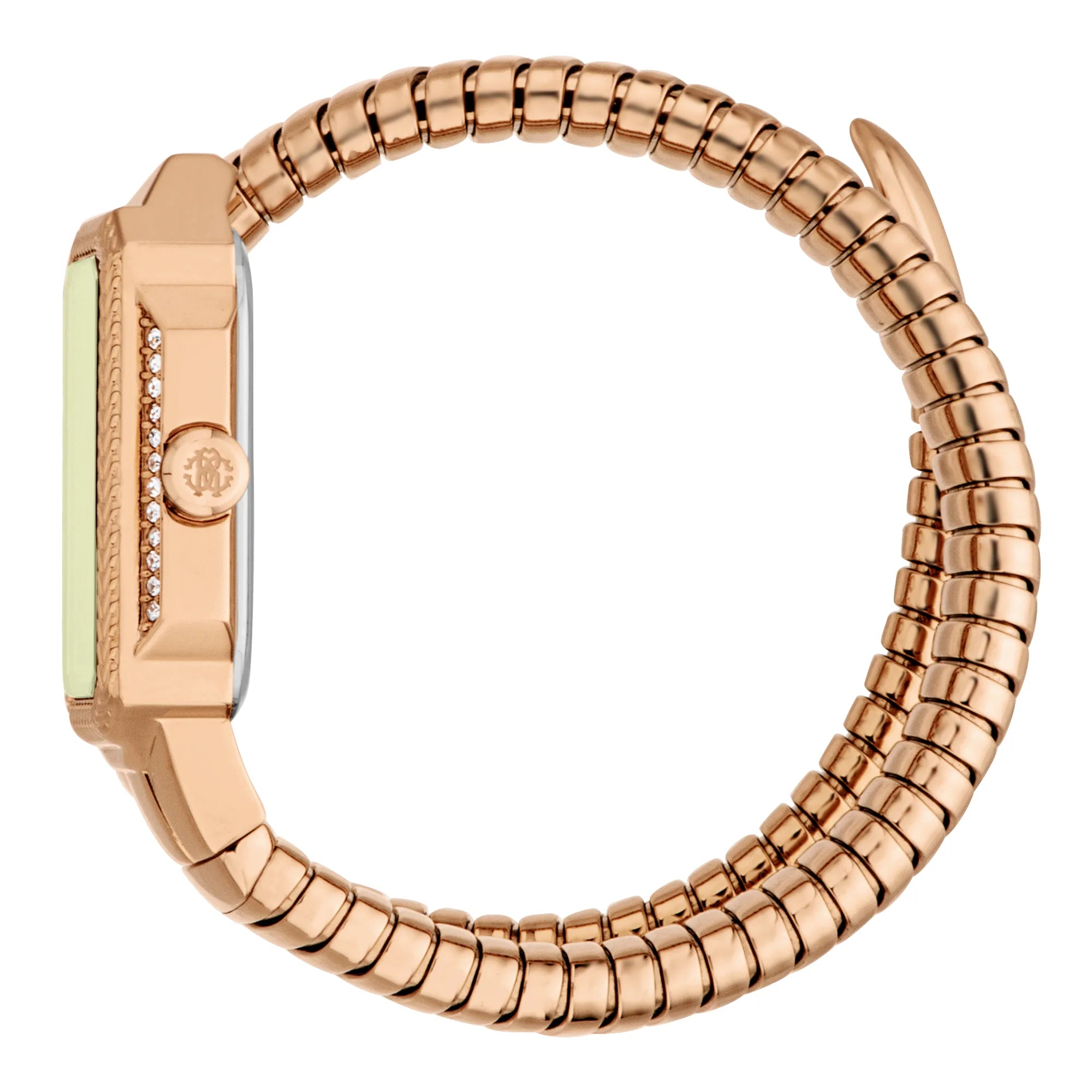 L'orologio Lady di Roberto Cavalli in oro rosa è un'armoniosa combinazione di eleganza e modernità. La cassa rettangolare e il cinturino emanano calore, mentre il quadrante verde oliva aggiunge un tocco di sofisticazione. Resistente all'acqua e dotato di un vetro minerale, incarna l'etica all'avanguardia del marchio.