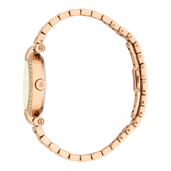 Nel mondo incantevole della moda, dove l'eleganza incontra l'innovazione, emerge un orologio che cattura l'essenza della sofisticazione e dello stile. Realizzato nel cuore dell'orologeria svizzera, questo Roberto Cavalli Lady è una testimonianza di design raffinato e artigianato squisito. La sua cassa rotonda, immersa nel caldo bagliore dell'oro rosa, misura un delicato 30mm, completando perfettamente il polso femminile. Il cristallo minerale protegge un quadrante verde oliva, un sottile richiamo alla tranquillità della natura, mentre il display a tre lancette, alimentato da un preciso movimento al quarzo con calibro GL34, garantisce una misurazione del tempo impeccabile. Il cinturino in acciaio inossidabile, anch'esso in oro rosa, avvolge il polso con una chiusura deployante a farfalla, offrendo sia sicurezza che eleganza. Con una resistenza all'acqua fino a 50 metri, questo orologio è tanto versatile quanto bello, pronto ad accompagnarti da una giornata casual a una serata elegante. La corona a tirare e spingere aggiunge un tocco di praticità, rendendo le regolazioni semplici. Questo Roberto Cavalli Lady non è solo un accessorio, è una dichiarazione di grazia e modernità, una perfetta fusione di moda e funzione che parla al cuore della donna contemporanea.